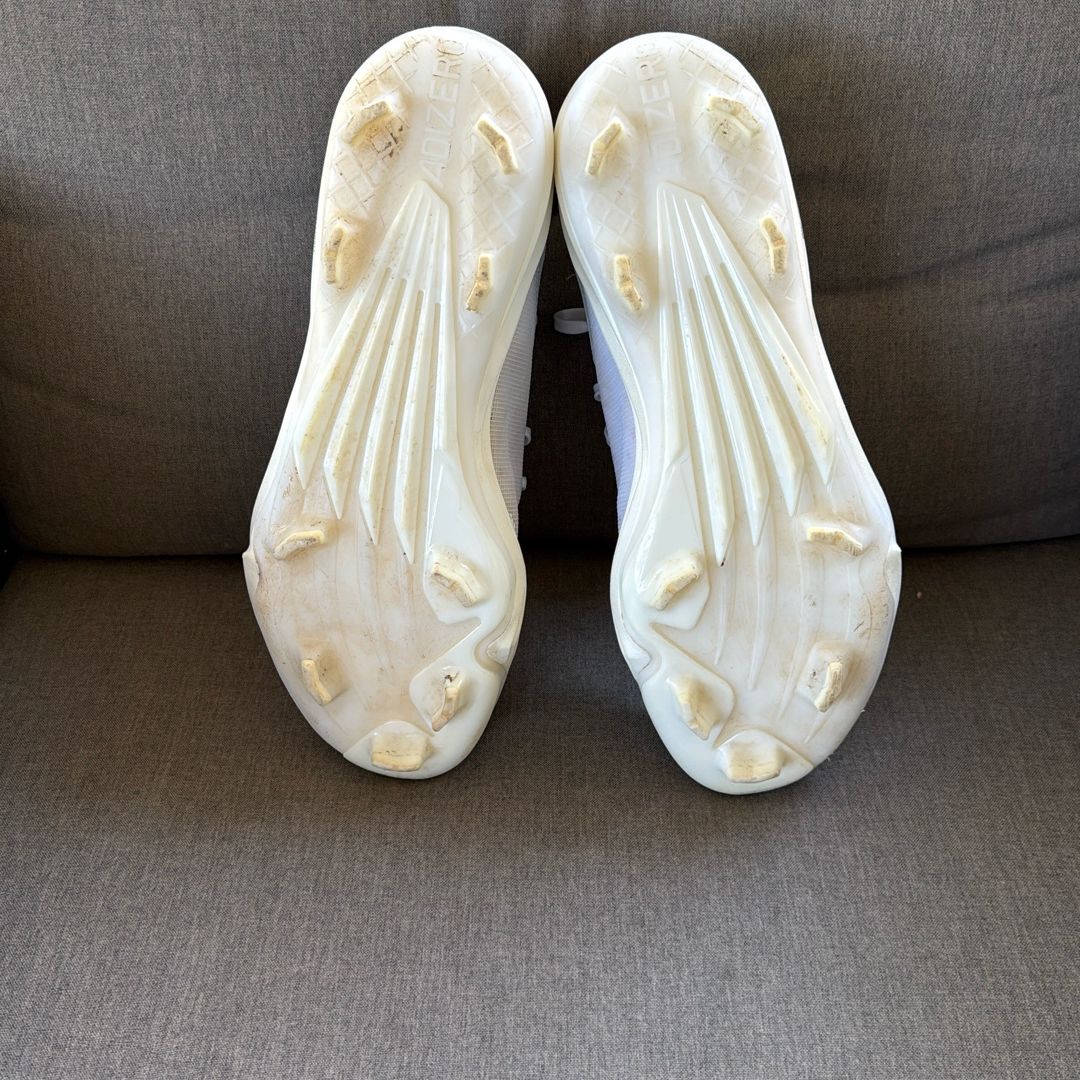 These cleats have only been worn three times. They are freshly cleaned with plenty of tread left. Practically brand new.