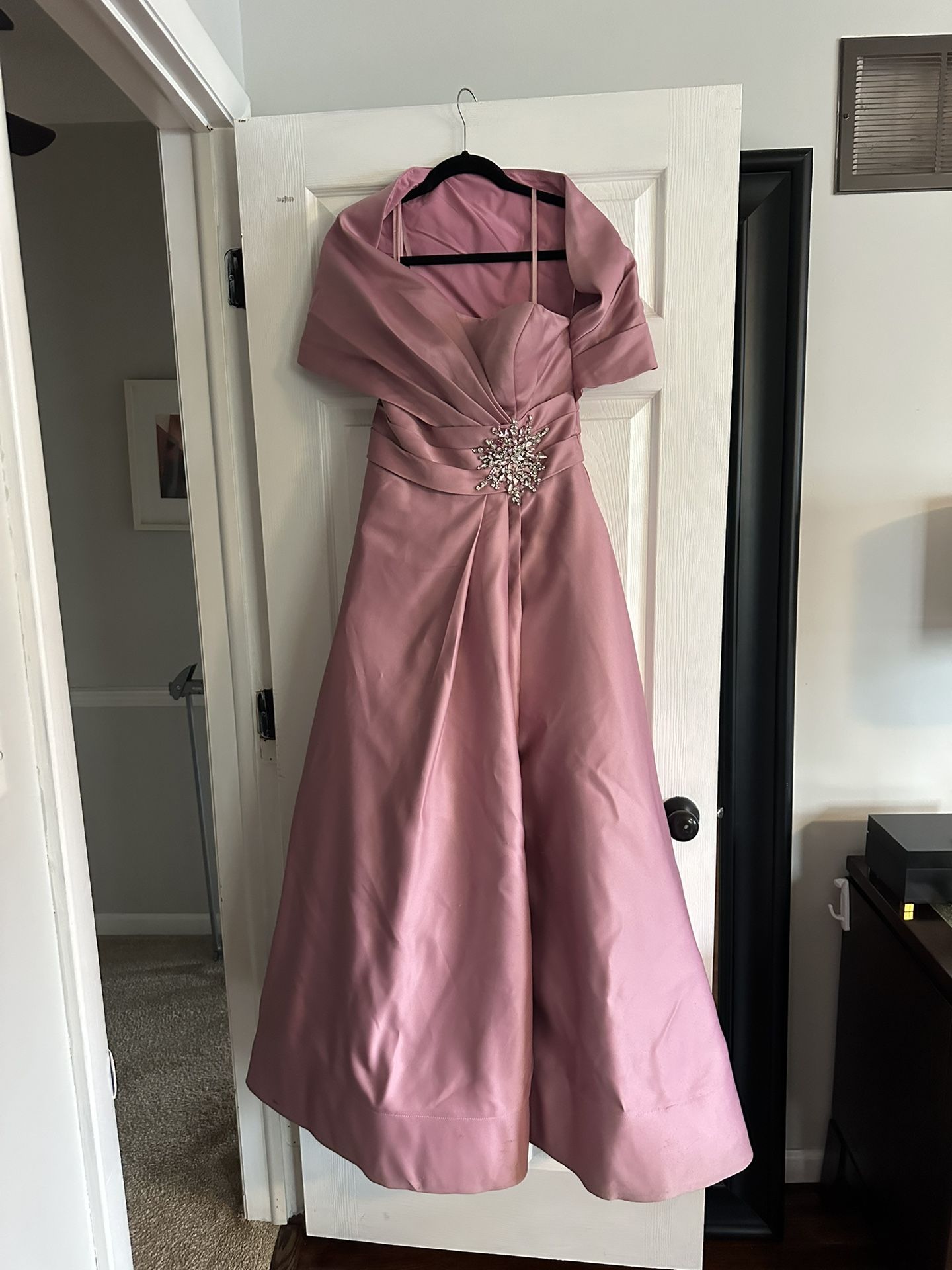 Terani Couture Satin One-Shoulder Sleeveless Beaded Applique A-Line Ball Gown