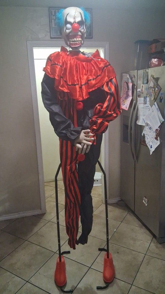 As is never used 6 Ft. Animated Standing Double-Head Pop-Up Clown Halloween Decoration