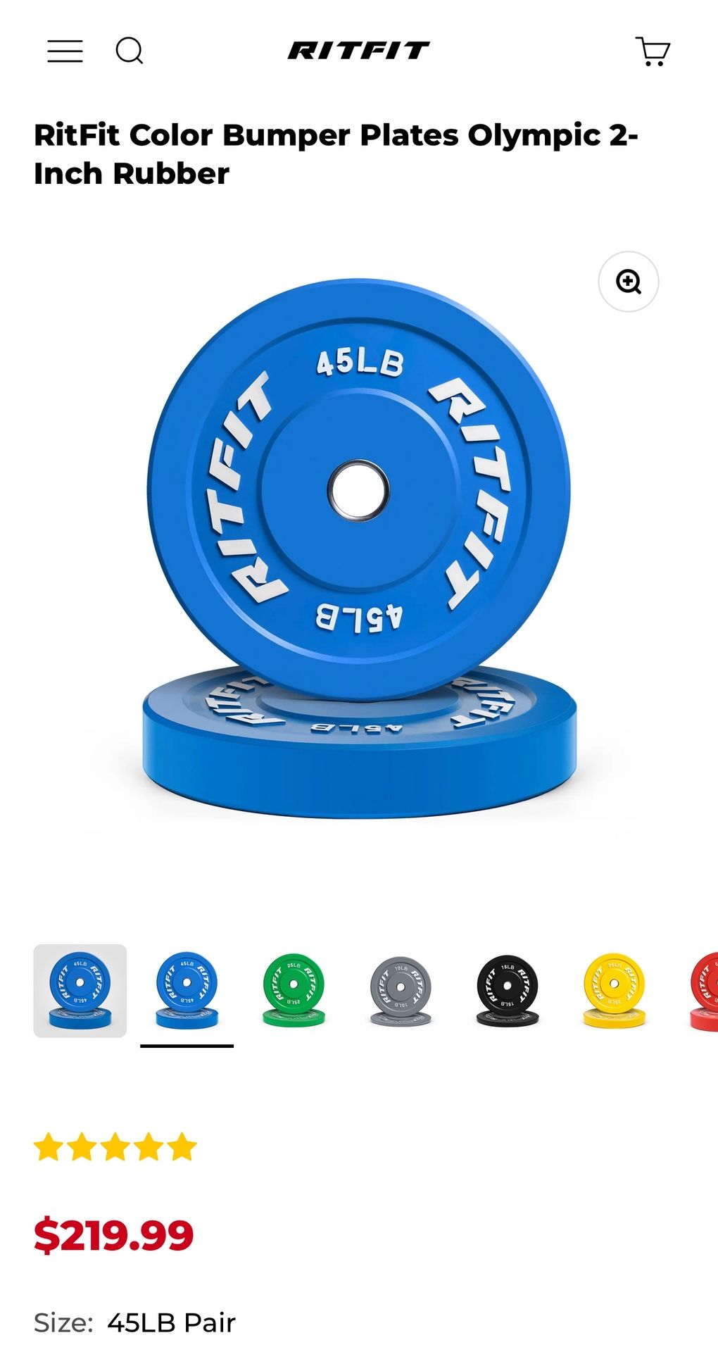 Ritfit 45lb Bumper Plates Olympic 2” Rubber