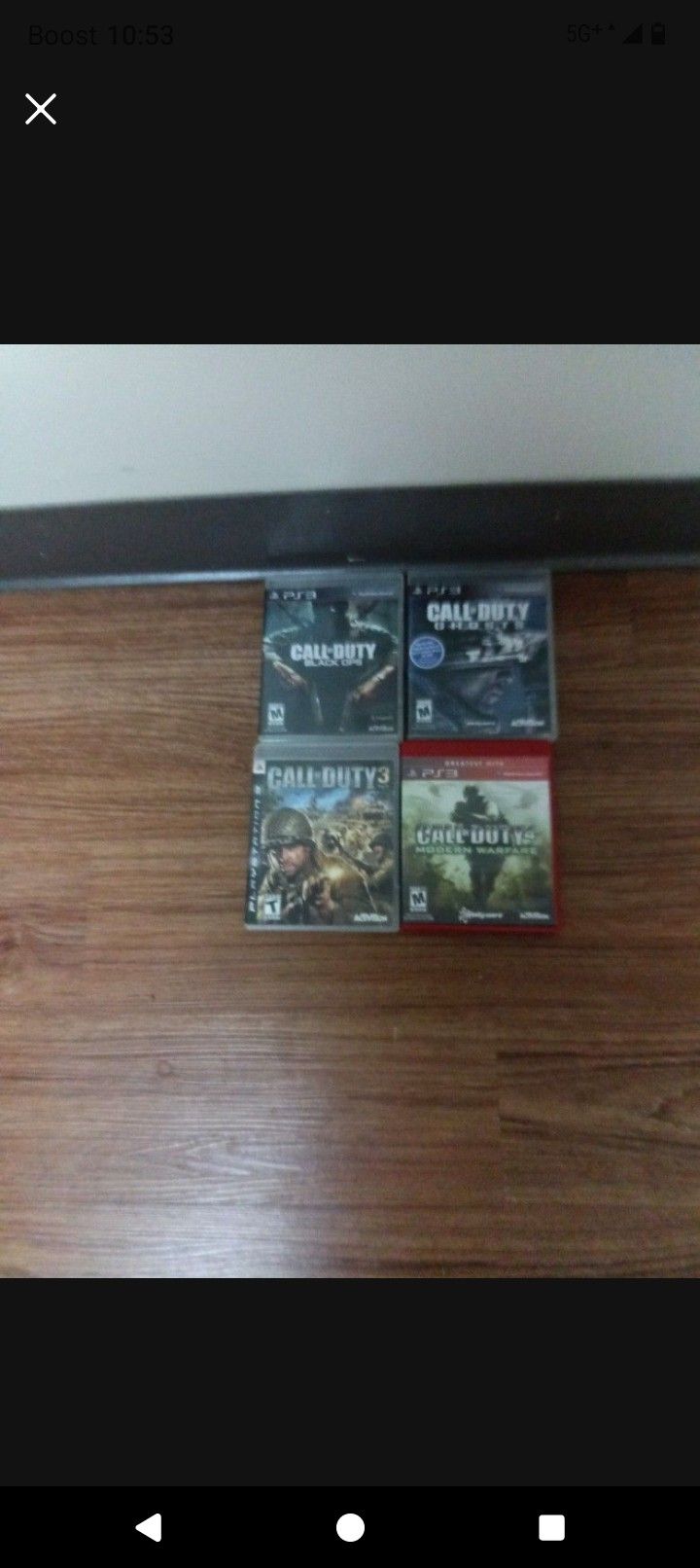 4 Call of Duty Games For PlayStation 3 1. Call of Duty Black Ops 2. Call of Duty Ghosts (3.) Call of duty 3 (4.) Call of Duty Modern Warfare all in good condition Must PickUp thank you have a great day