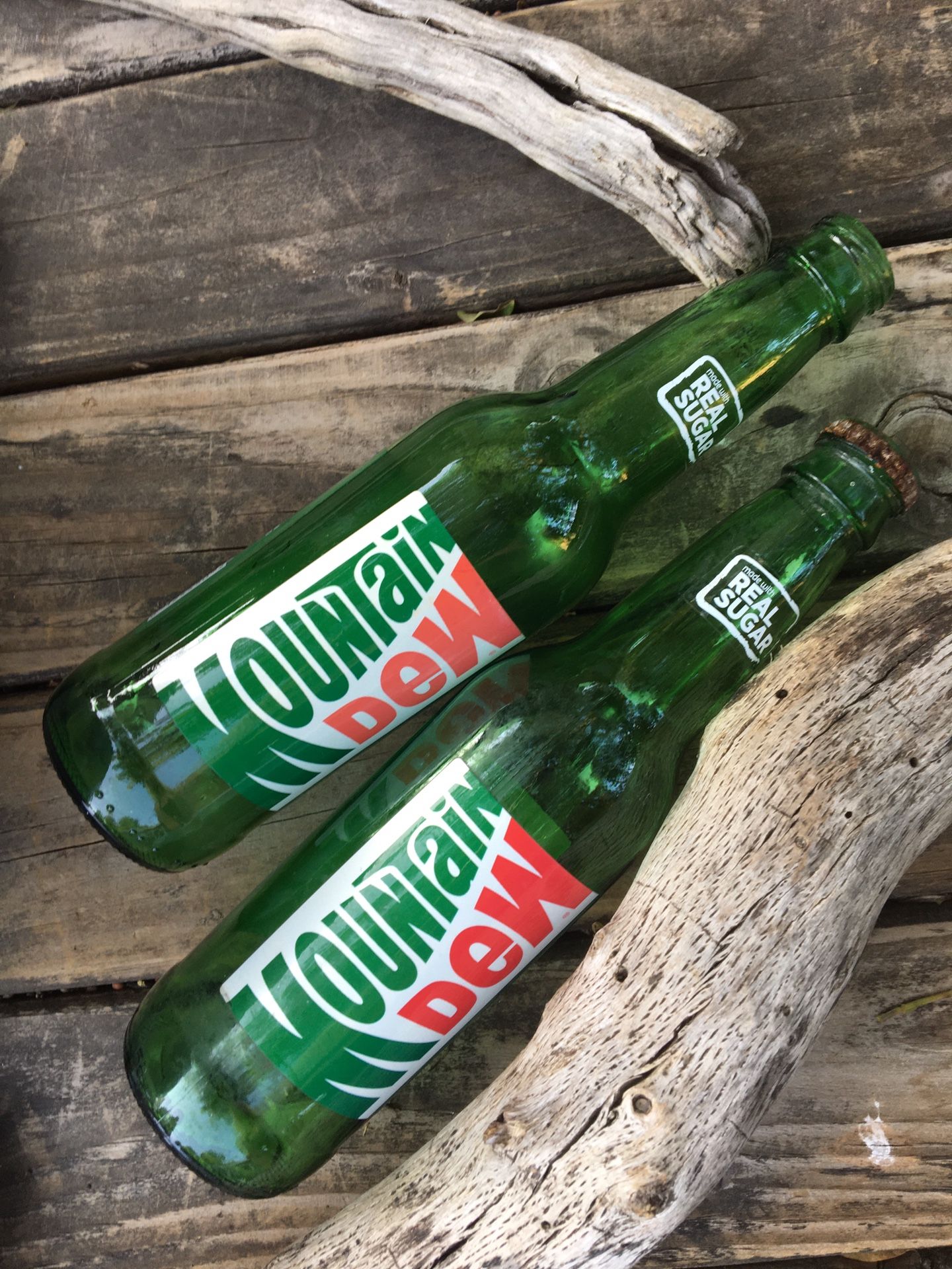 (2) Mountain Dew Real Sugar Green Glass Bottles