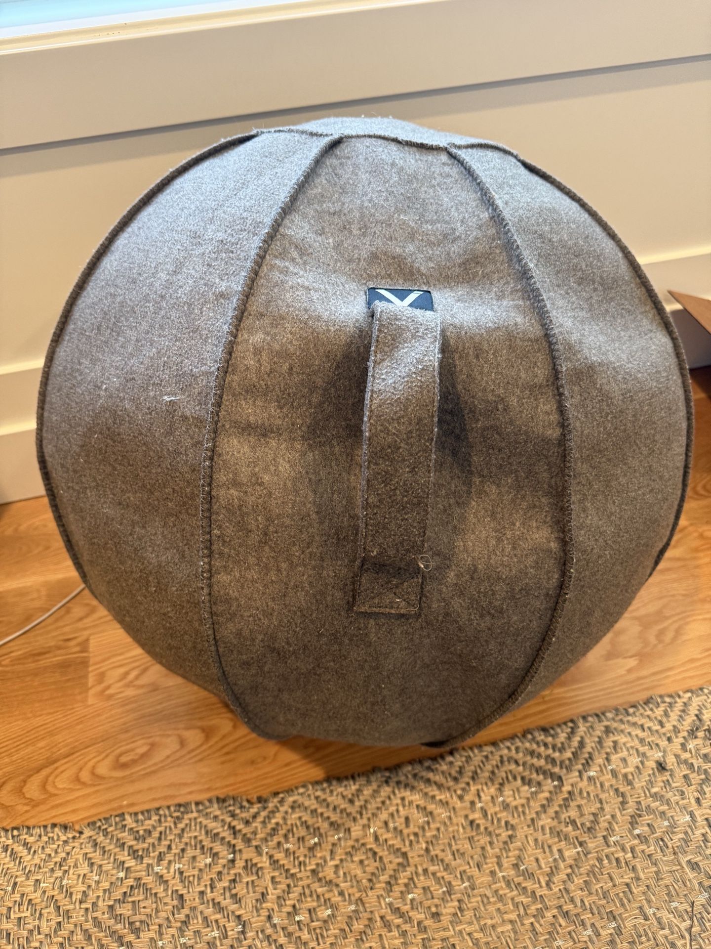 Nearly brand new! Balance ball for office/desk seat or exercise. Cover is removable. Inflator included. $20 OBO