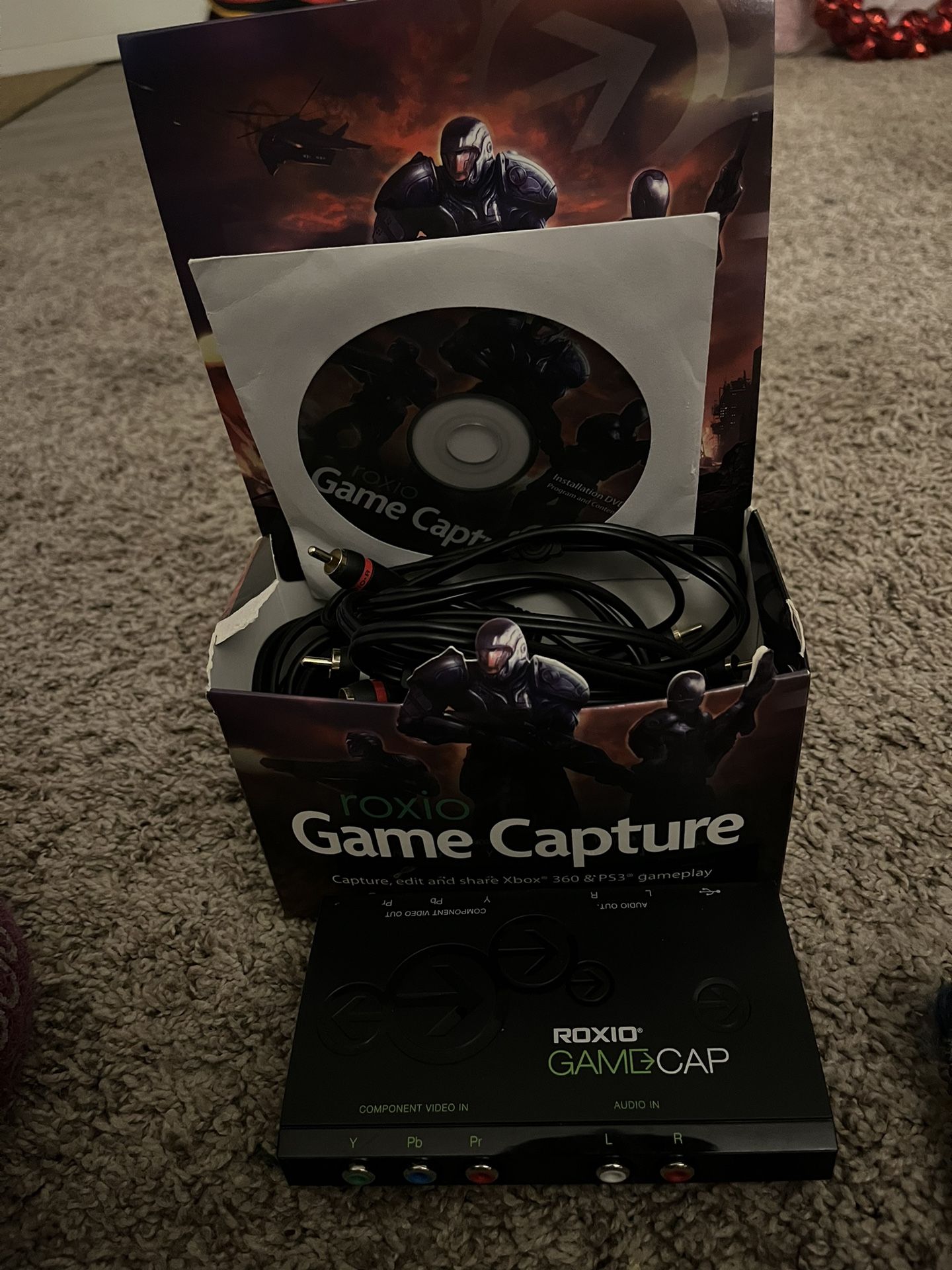 Roxio game capture with disc, box, and all the cables