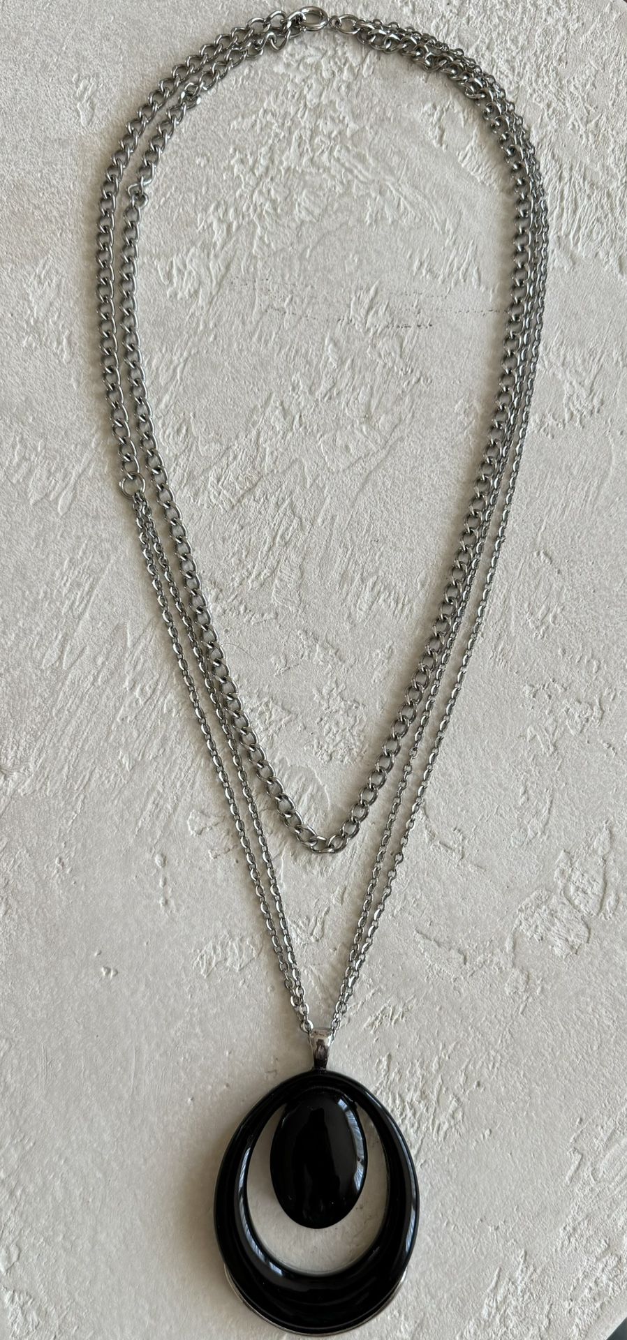 Oval Onyx Pendant Necklace, Silver Plated Backing With Adjustable Chain, $30