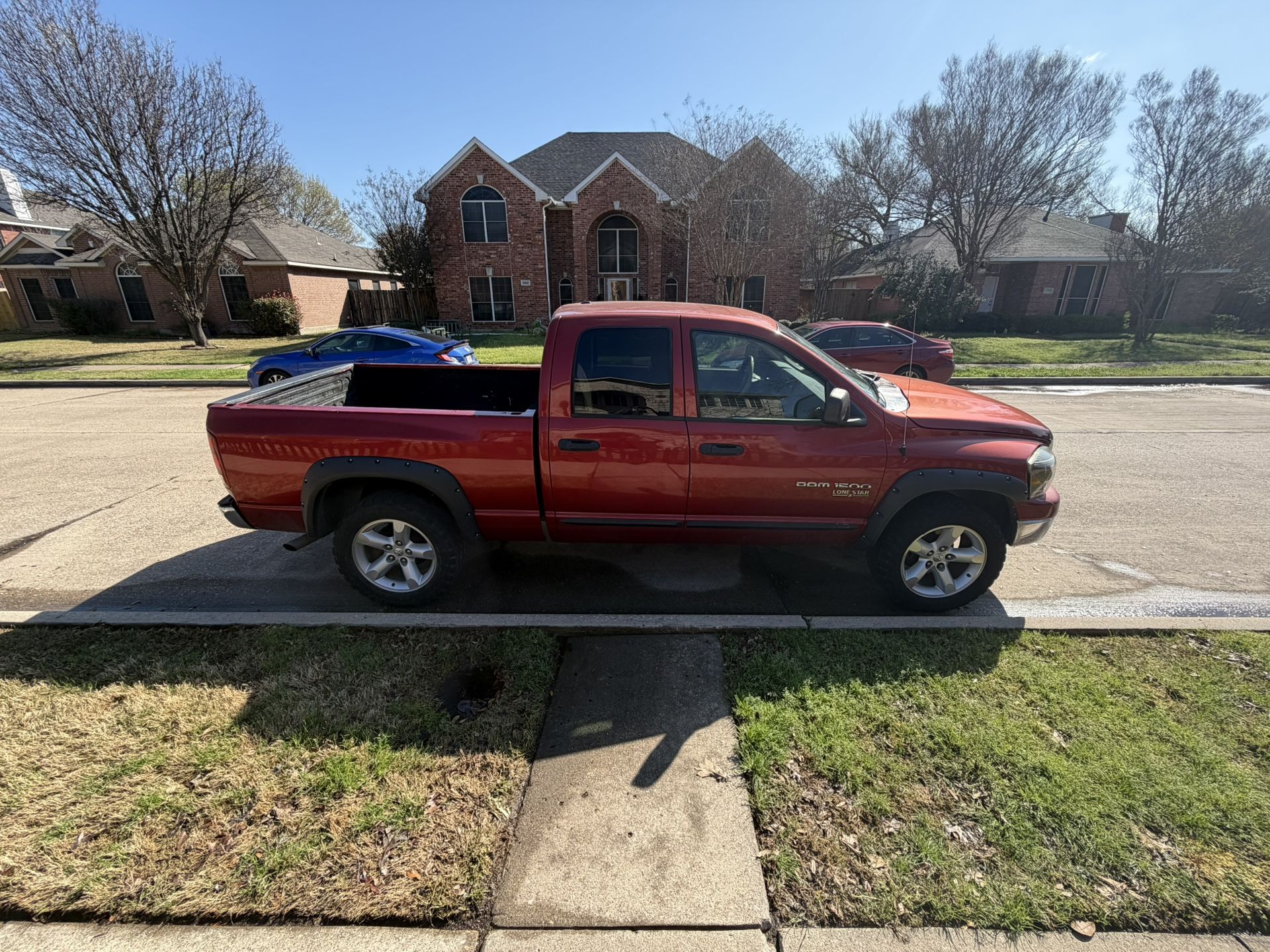 2006 Ram 1500 quad cab 4.7L V8 w/off road tires. AC blows cold! 203k miles, engine has about 128k miles on it Replaced gas tank, alternator, AC fan, new Y pipe and catalytic converters. Has a few dents, paint spill in bed from previous owner. Low beams don’t work, but high beams and fog lights ok. One code for O2 sensor present.