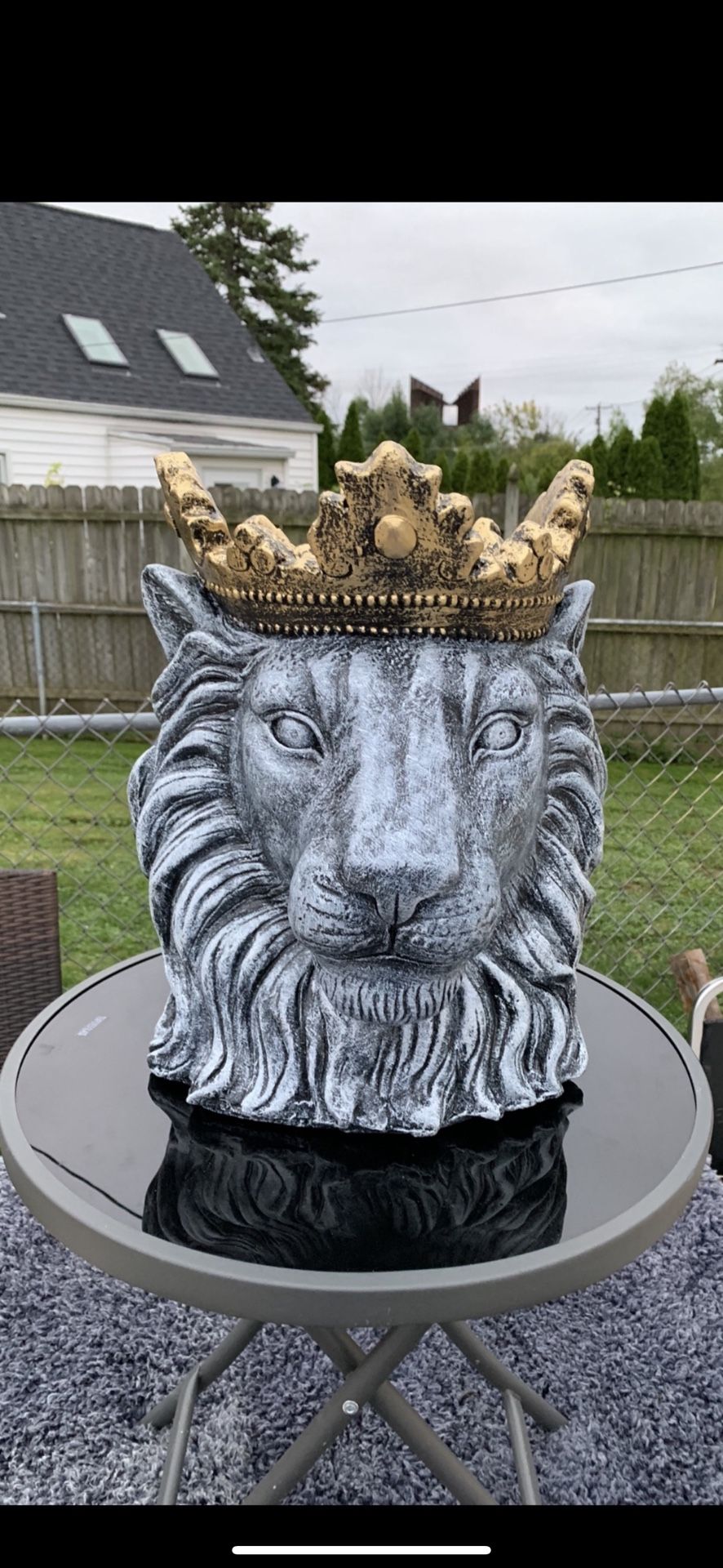 Lion bust planter statue