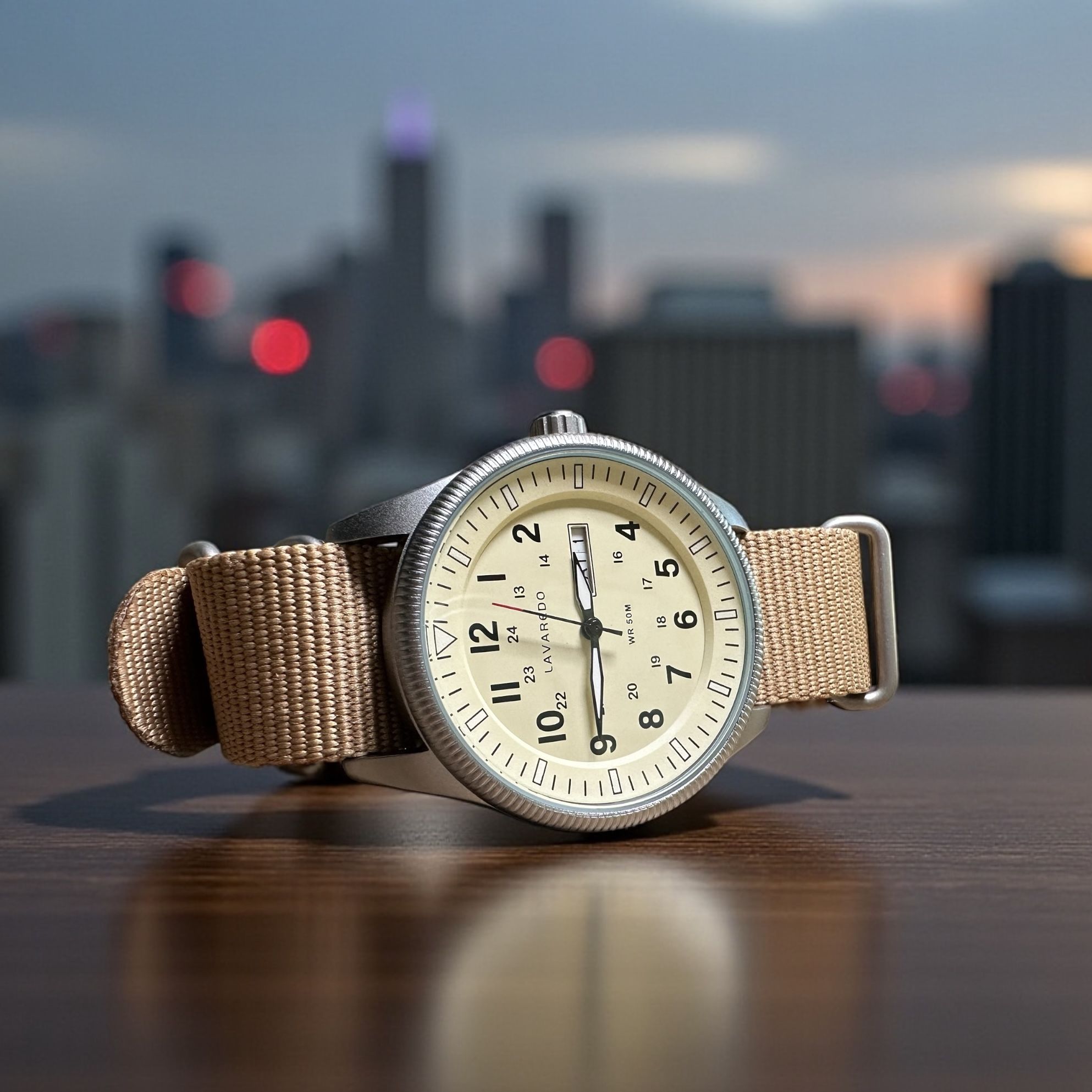 ⭐️ GREAT CHRISTMAS GIFT! ⭐️ Lavaredo Field Watch - $40 NEW IN BOX - GREAT X-MAS GIFT! This rugged and stylish 40mm field watch from Lavaredo is the perfect accessory for both daily wear and outdoor adventures. The watch features a durable, matte metal case and a comfortable, beige nylon strap. The easy-to-read analog dial includes both 12-hour and 24-hour military time markers, along with luminous hands and indices for visibility in low-light conditions. A date display window is also included for added functionality. This timepiece is designed for durability and is water-resistant, making it a reliable choice for any situation. NO TARIFFS OR IMPORT FEES