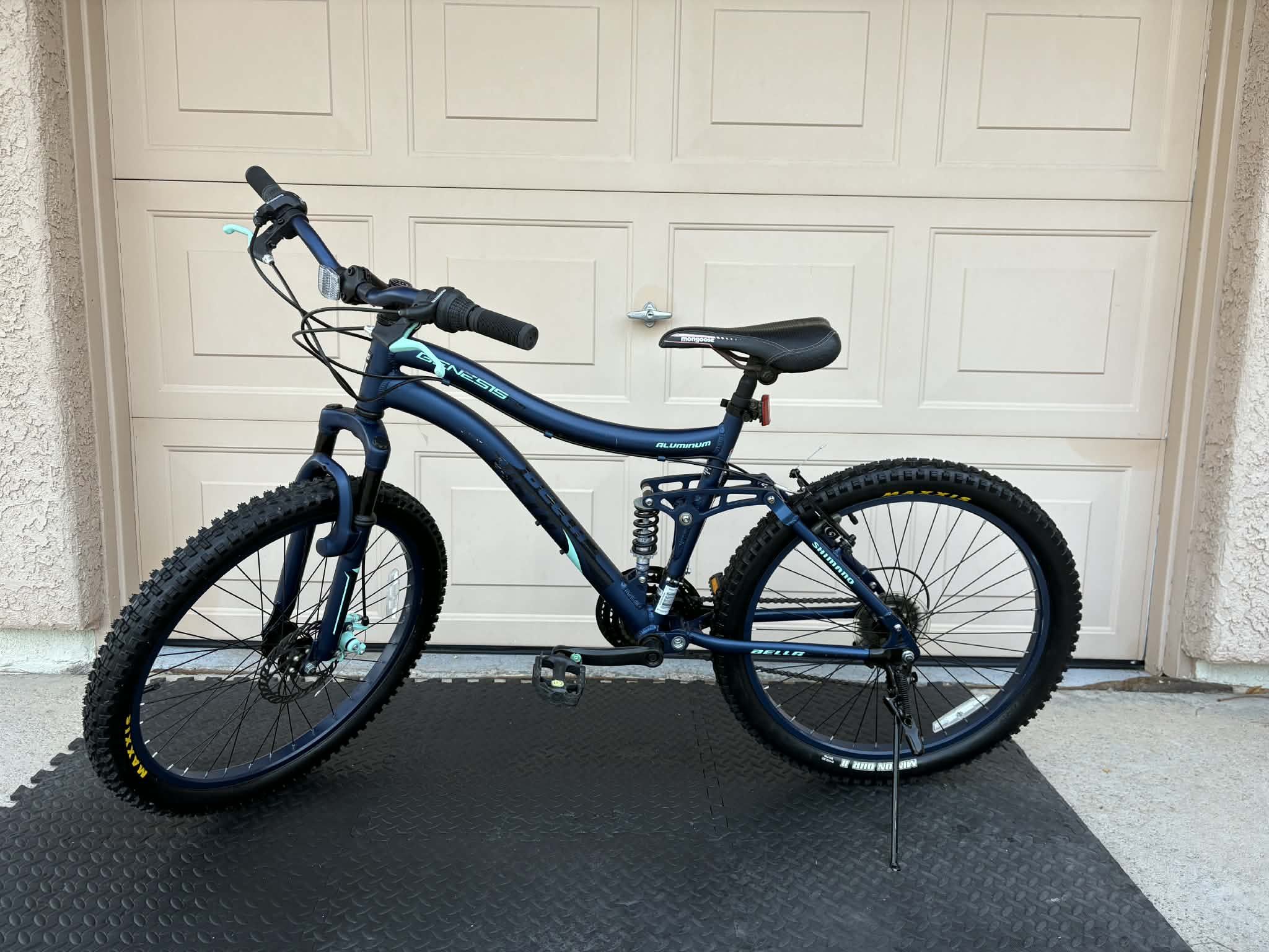Genesis Bella Vista 24" full suspension mountain bike in blue.
