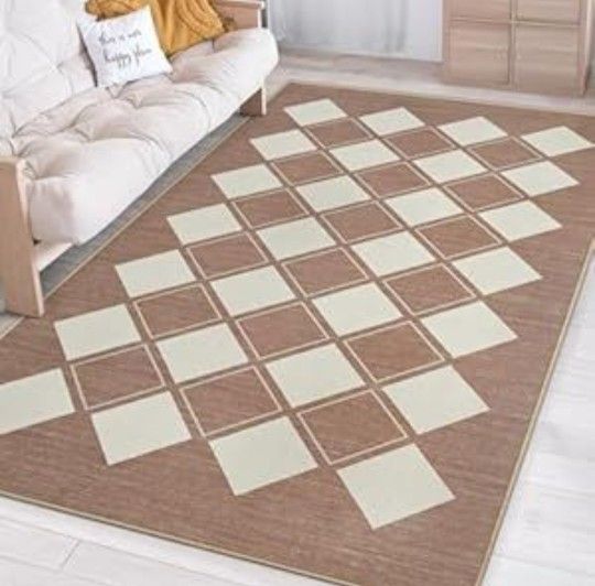 8x10 Area Rug for Living Room Bedroom, Washable Checkered Rug Non-Slip Fuzzy Fluffy, Indoor Modern Carpe for Home Aesthetic Decor New. Antelope