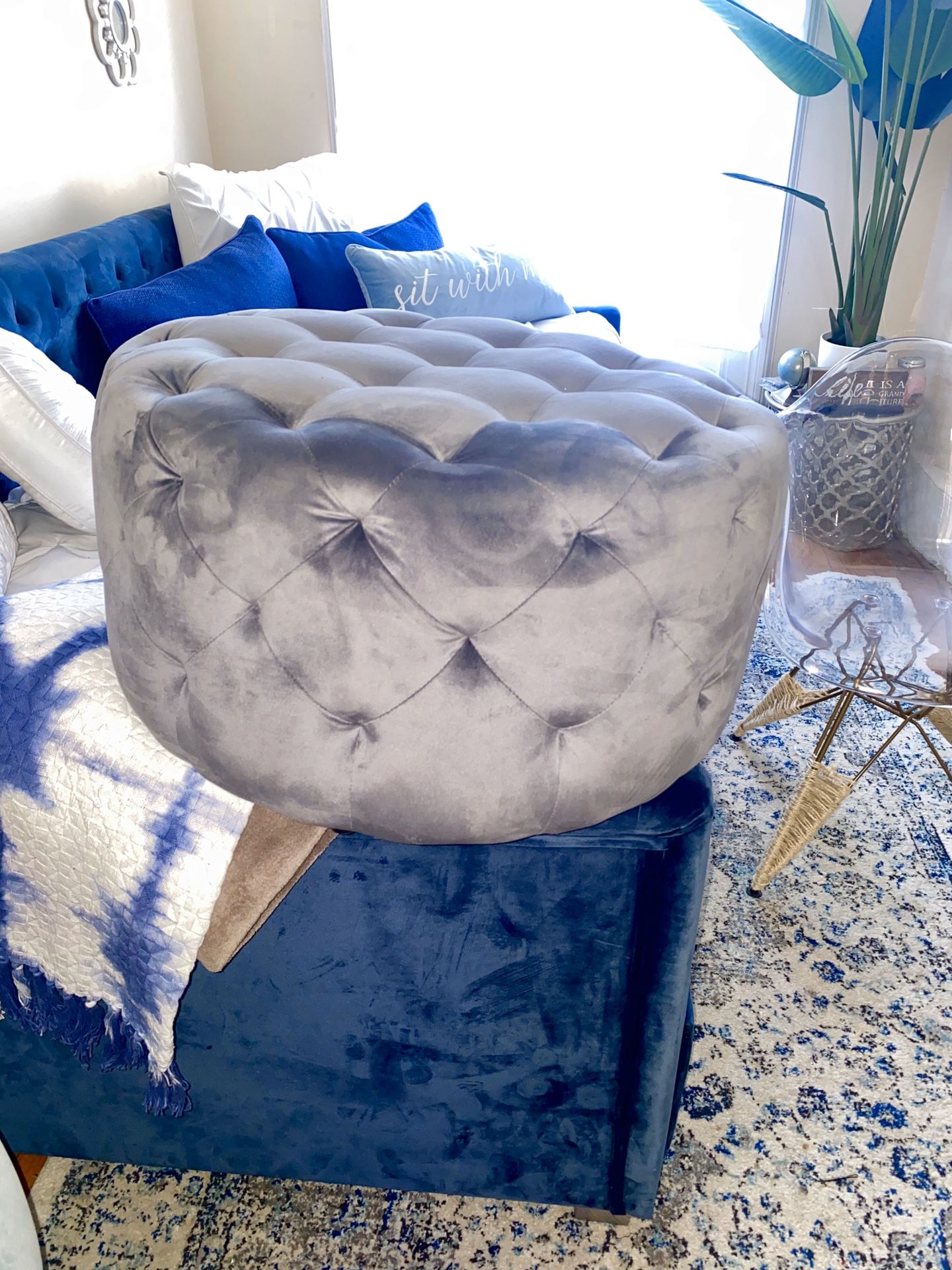 Beautiful just beautiful velvet /suede tufted /upholstered ottoman &bench or stool/footrest . I ordered a smaller one so I’m getting rid of this one. Just like new. Message for questions . Pick up in Harlem , New York upper West Side area. Need gone soon moving out