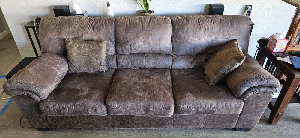This sofa is only 4 years old. Purchased at Pruitt's. Recently cleaned and ready to go. Pillows included if you want them. Size: 84" long X 36" deep X 36" tall
