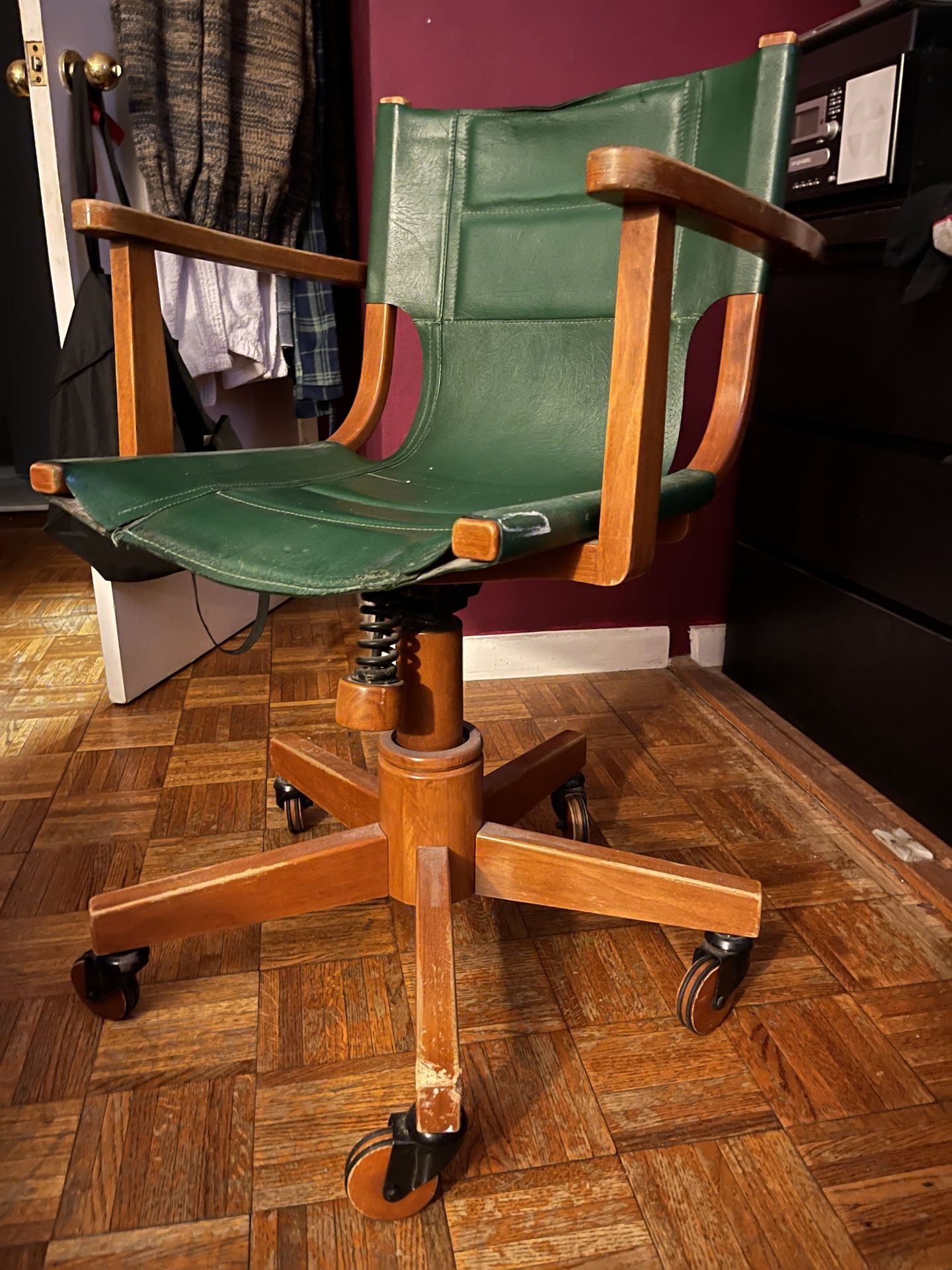 VINTAGE Green leather/Wood Director’s Chair on casters