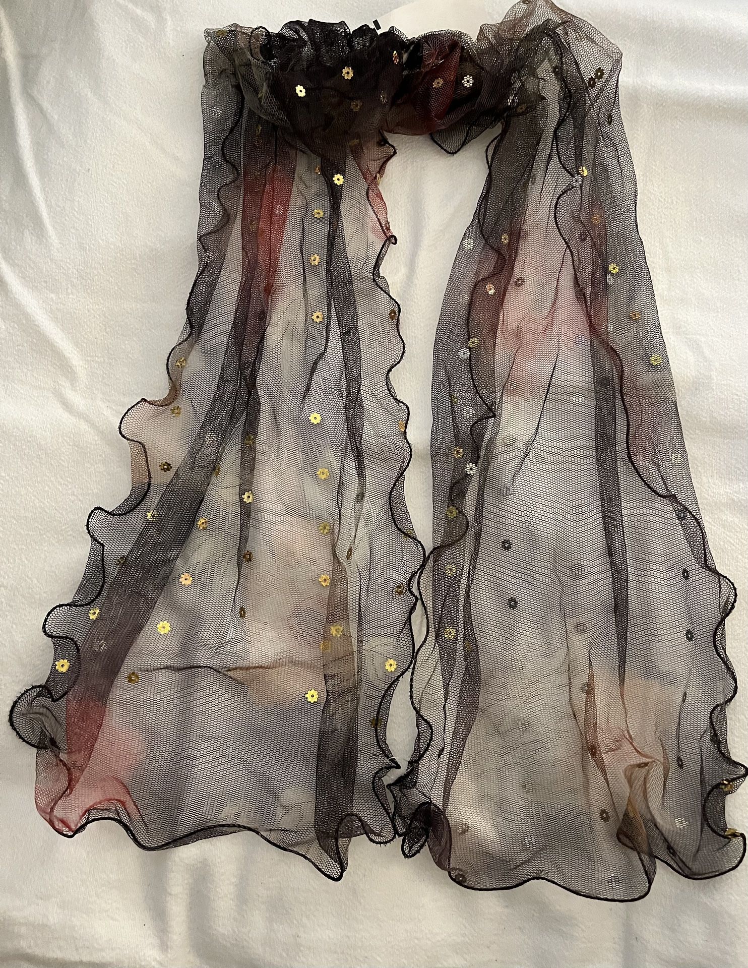Scarf - Black With Curled Edges And Gold Sequins