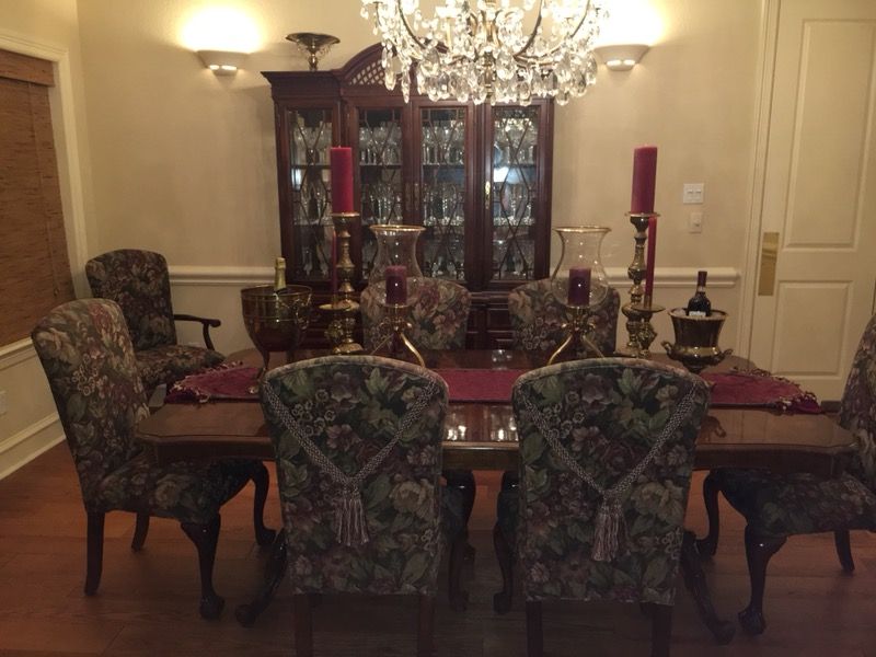 Buffet 8 chairs (2 armed) Table with leaf China cabinet