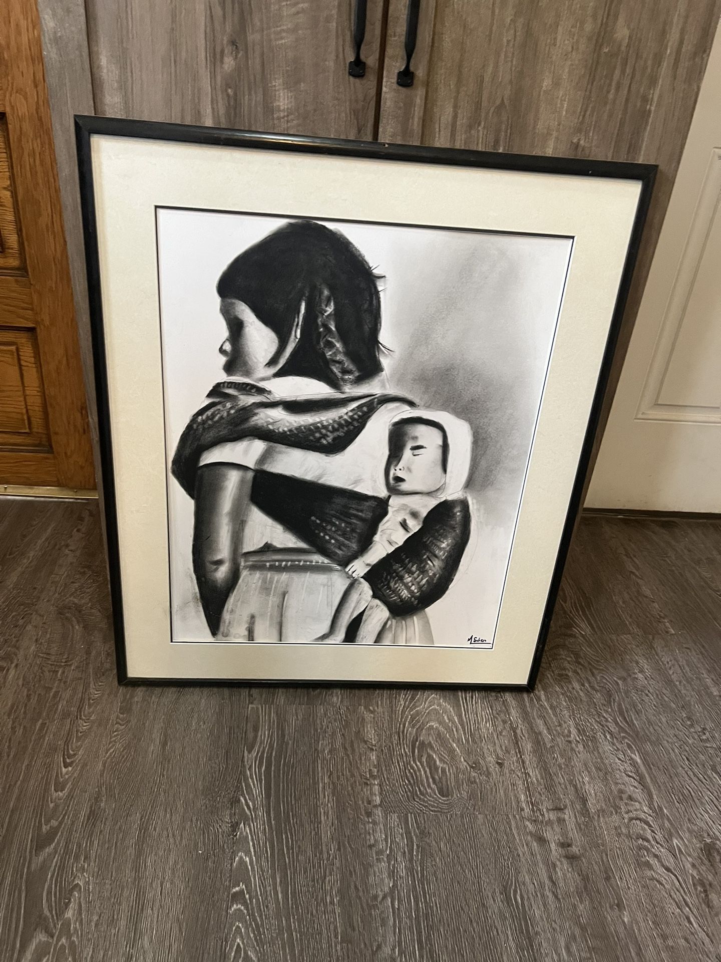 Art charcoal Indigenous women carrying baby❤️Charcoal , Echo a carbon, lapiz de carbon, charcoal