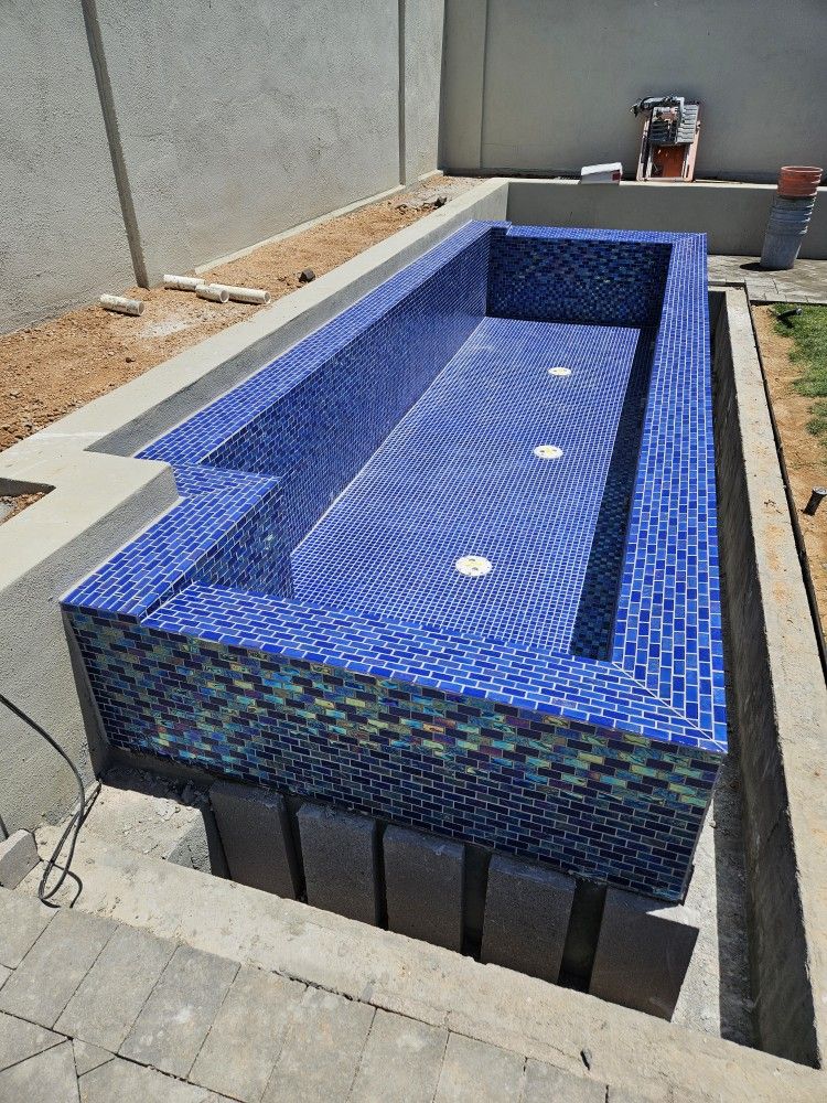 Water line pool tile Remove and replace Glass or regular Pool coping Laser level Stone Roud bambin convercion Guaranty jobs