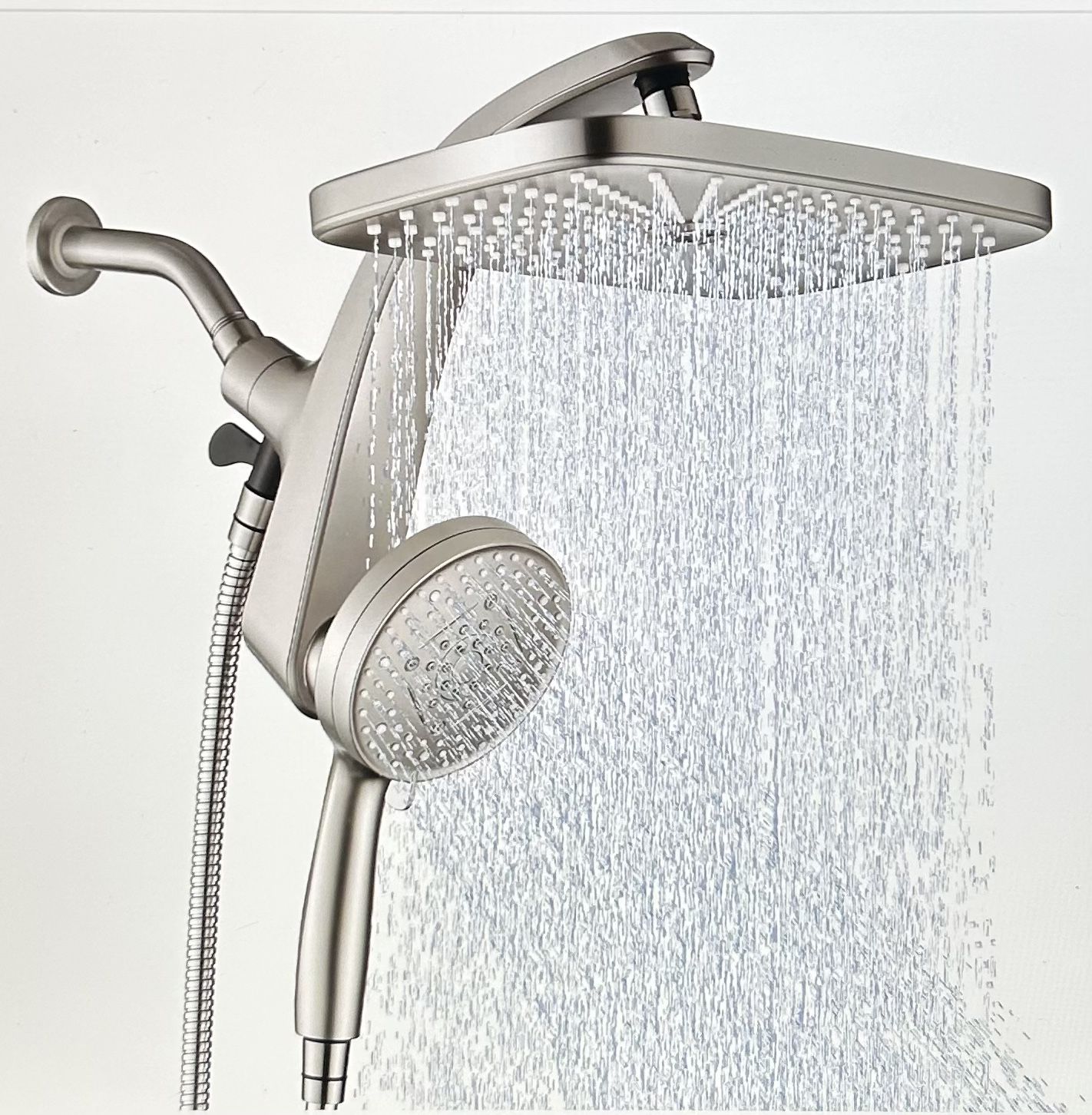 Selling new in box upgraded showerhead with handheld spray combo fixed showerhead and 10 spray handheld showerhead functions detachable showerhead built in magnetic docking and power jets function starlight nickel color upgraded technology 12” large square showerhead allows full body coverage 2 extra mode power jets 278 spray nozzles rainforest experience switch shower flow one at a time or both together easy set up installation and usage retail $80