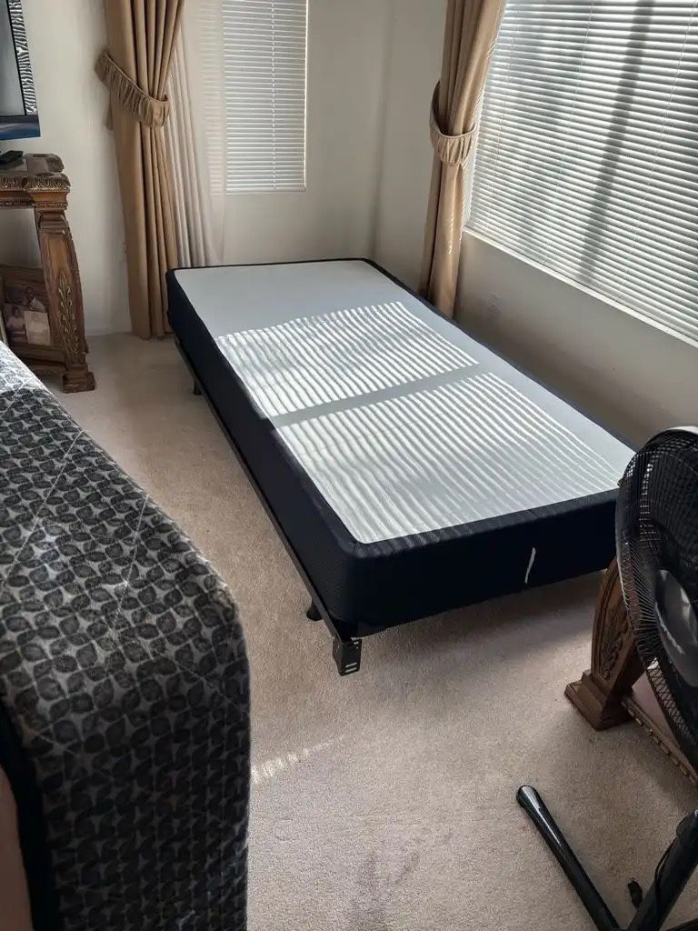 Like new twin bed for sale comes with a metal frame box spring and a seally mattress all like new nothing wrong or stains or rips only asking 150 dollars for everything located in Silverado Ranch and Maryland thank you ill deliver no extra charge depending on distance!!