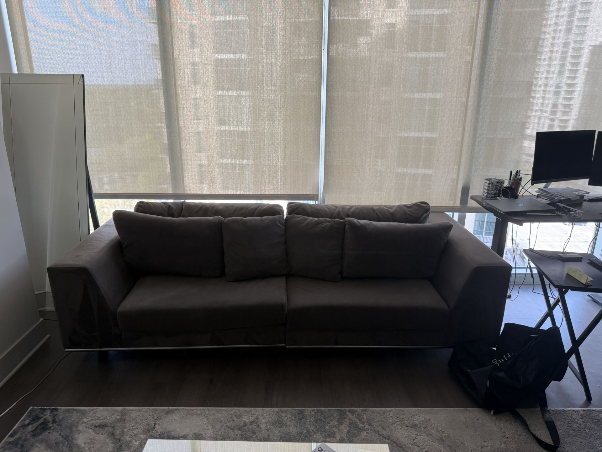 Modani sofa- $200 (no stains, smoke free home) Mirror image sofa Modani coffee table - $75 (chipped on the edge)