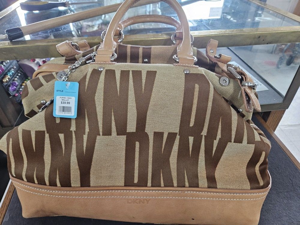 Up for sale in our thrift shop is this DKNY Purse/Handbag With Removable Arm Strap. Price is $39.99 plus tax. No holds. Will not answer questions like is this still available. Will mark as sold once purchased. Come down and visit our shop at: The Hoarders Attic Thrift Shop 8328 S Park Avenue Tacoma, WA 98408 Tuesday through Sunday 11AM to 5PM