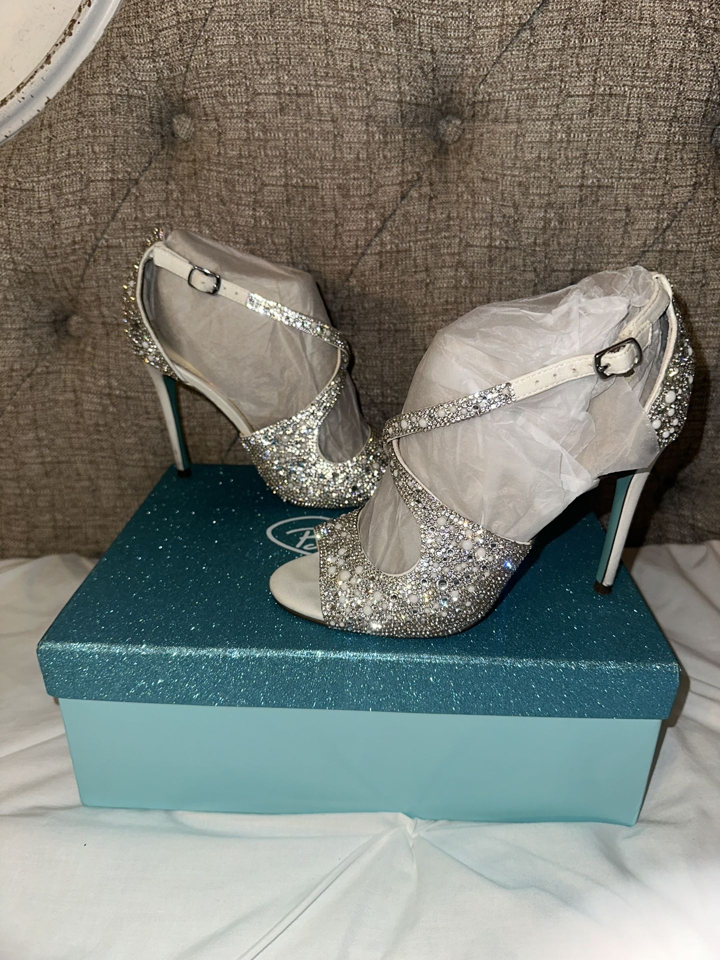 Betsey Johnson blue line collection Dazzling silver heels with sparkling embellishments. Ideal for glamorous events. These shoes have been worn one time for a special occasion they are beautiful the rhinestones shine good quality rhinestones. These have been discontinued in several places size 7 in a box probably worn like three hours.