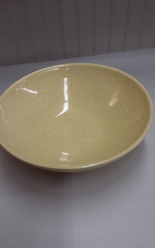 Beautiful yellow spelled bowl USA made ceramic Located at: Some R 4 U Antiques 321 W Railroad Ave Downtown Shelton Hours Wed-Fri 11-5pm Sat-10-5pm Sun-11-4pm