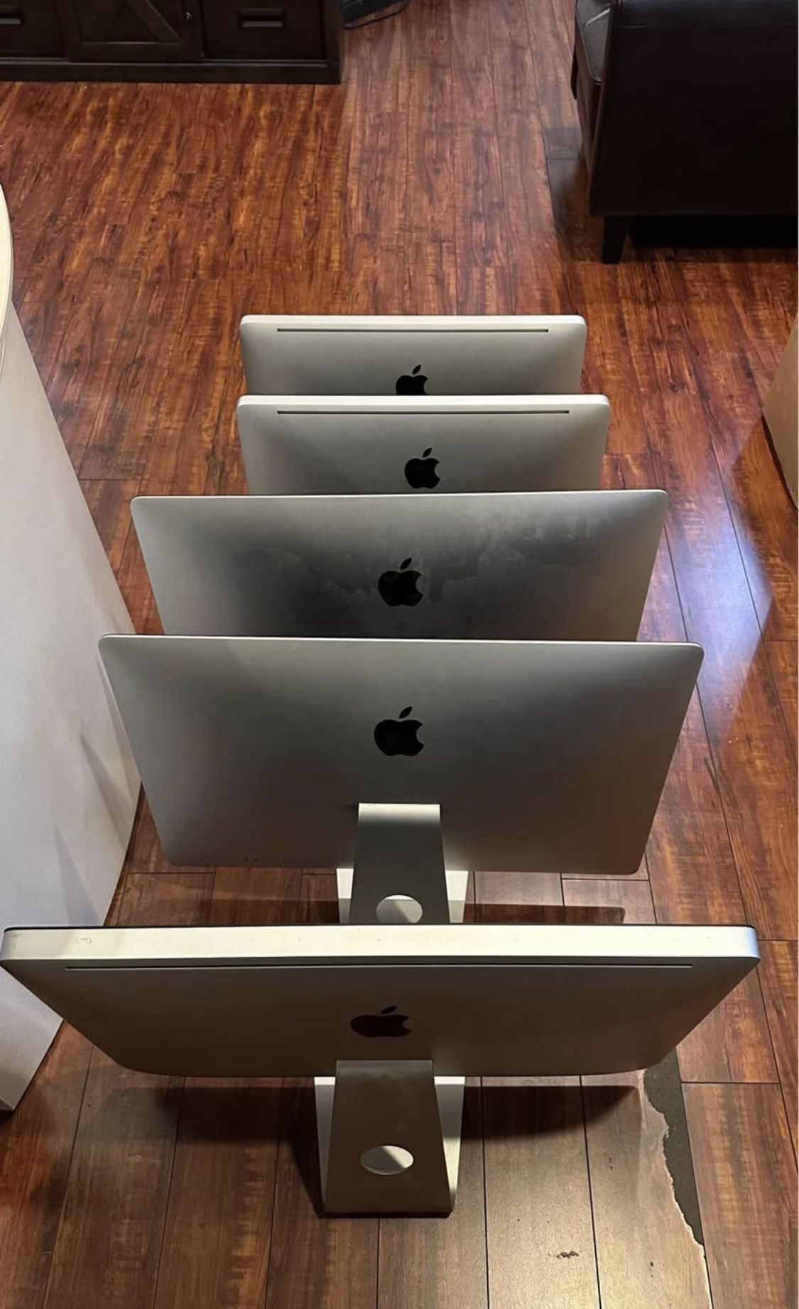 Selling a set of five working iMacs (tested and ready to go): • Two 27” iMacs (2012 models) • One 27” iMac (2010 model) • Two 21” iMacs (2010 models) — one missing HDD All units have been tested, HDDs erased, and are in good working condition. 👉 No keyboard, mouse, or power cable included. 💰 Price is for the entire lot — not sold separately. Perfect for tech enthusiasts, refurbishers, or anyone looking for spare parts!