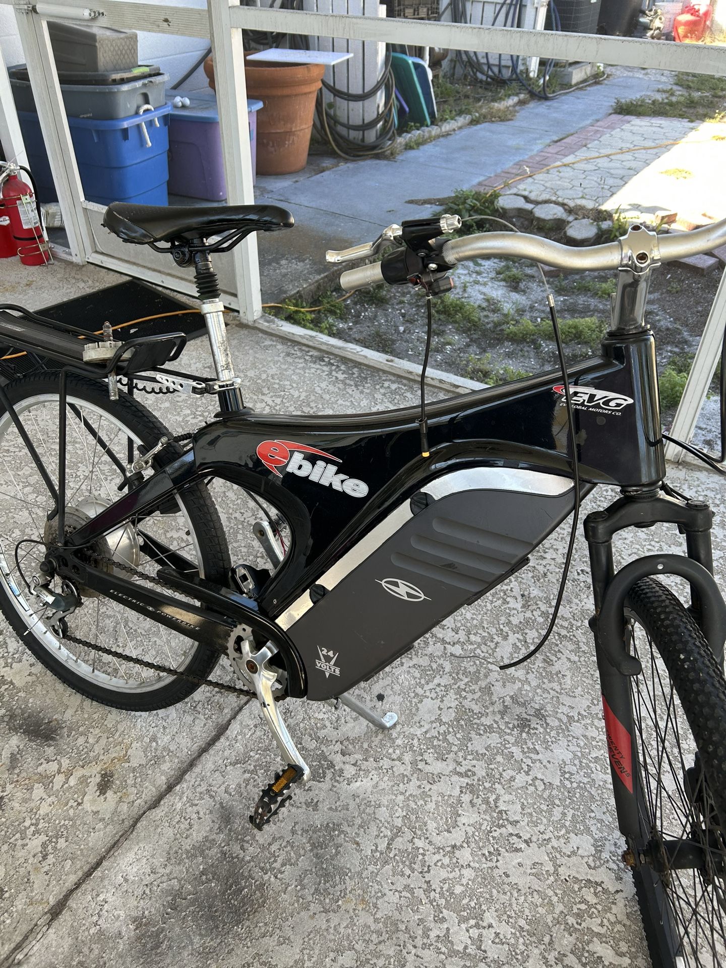 E bike Selling as is condition. Needs battery and charger. Beyond that not sure what it needs. EV Global Motors Company. Color black.