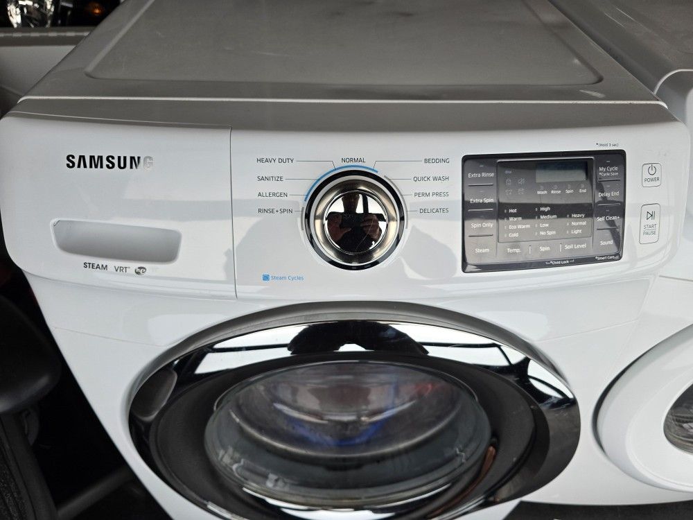 Selling a matching Samsung washer and electric dryer set. Both units work perfectly and have been reliable. Stacking kit included. Asking $425 OBO for both. Washer (WF42H5200AW): 4.2 cu. ft. with Steam Wash and Self Clean+ cycle. Dryer (DV42H5000EW): 7.5 cu. ft. with Sensor Dry. Condition: Mechanically excellent. Runs quiet and cleans well. Cosmetically, there are some scuffs on the sides and a small dent on the washer top from a previous move (see attached photos). Will deliver to nearby areas if gas/time is covered. Cash or Venmo, Zelle, etc.