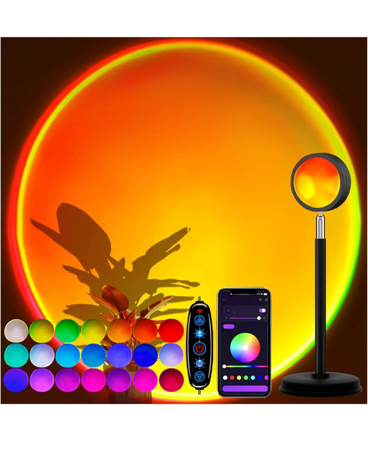 Sunset Lamp Projector with APP Control - 21 Color Changing LED Sunset Light, 180° Adjustable for Photography, Bedroom Decor, Party, Wedding, Mood Lighting