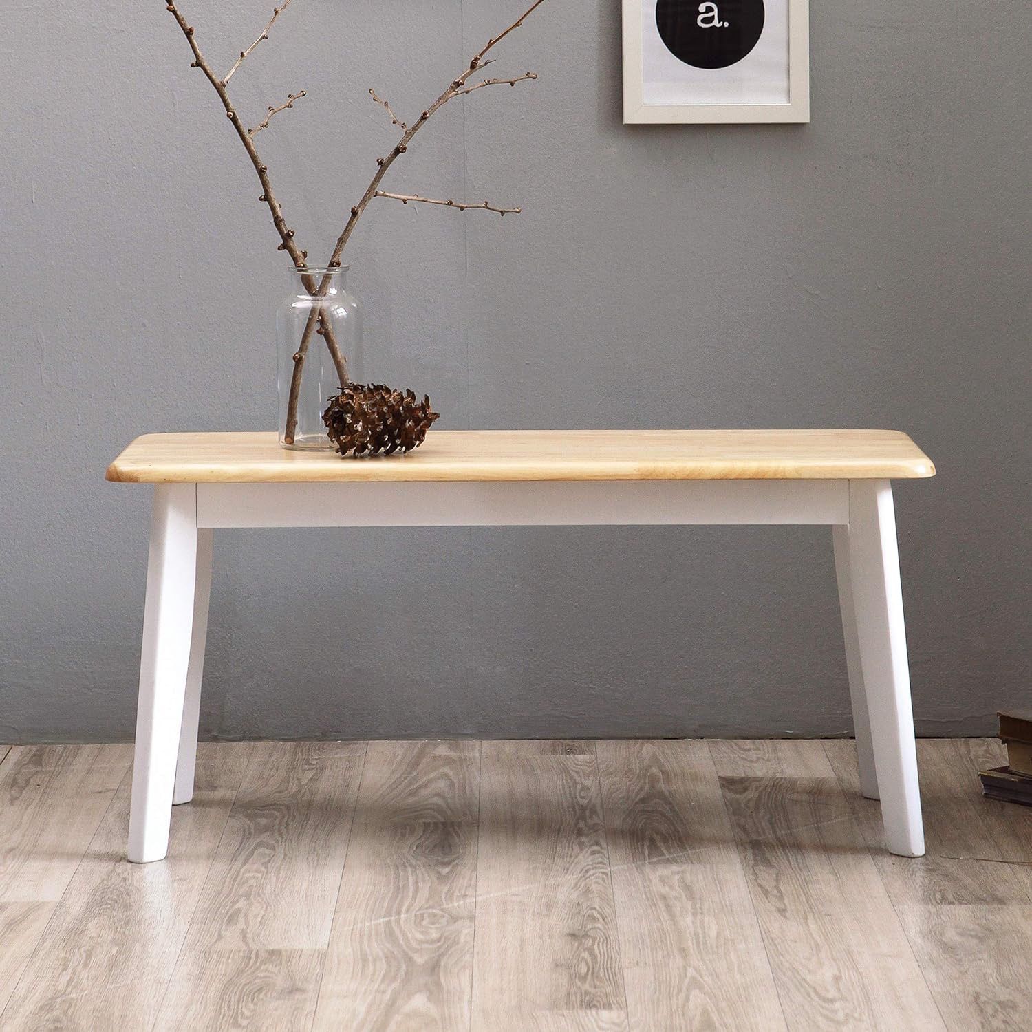 Canberra 37.4" Wooden Dining Bench/Mid Century Modern Solid Malaysian Oak Kitchen Bench (Natural-White)