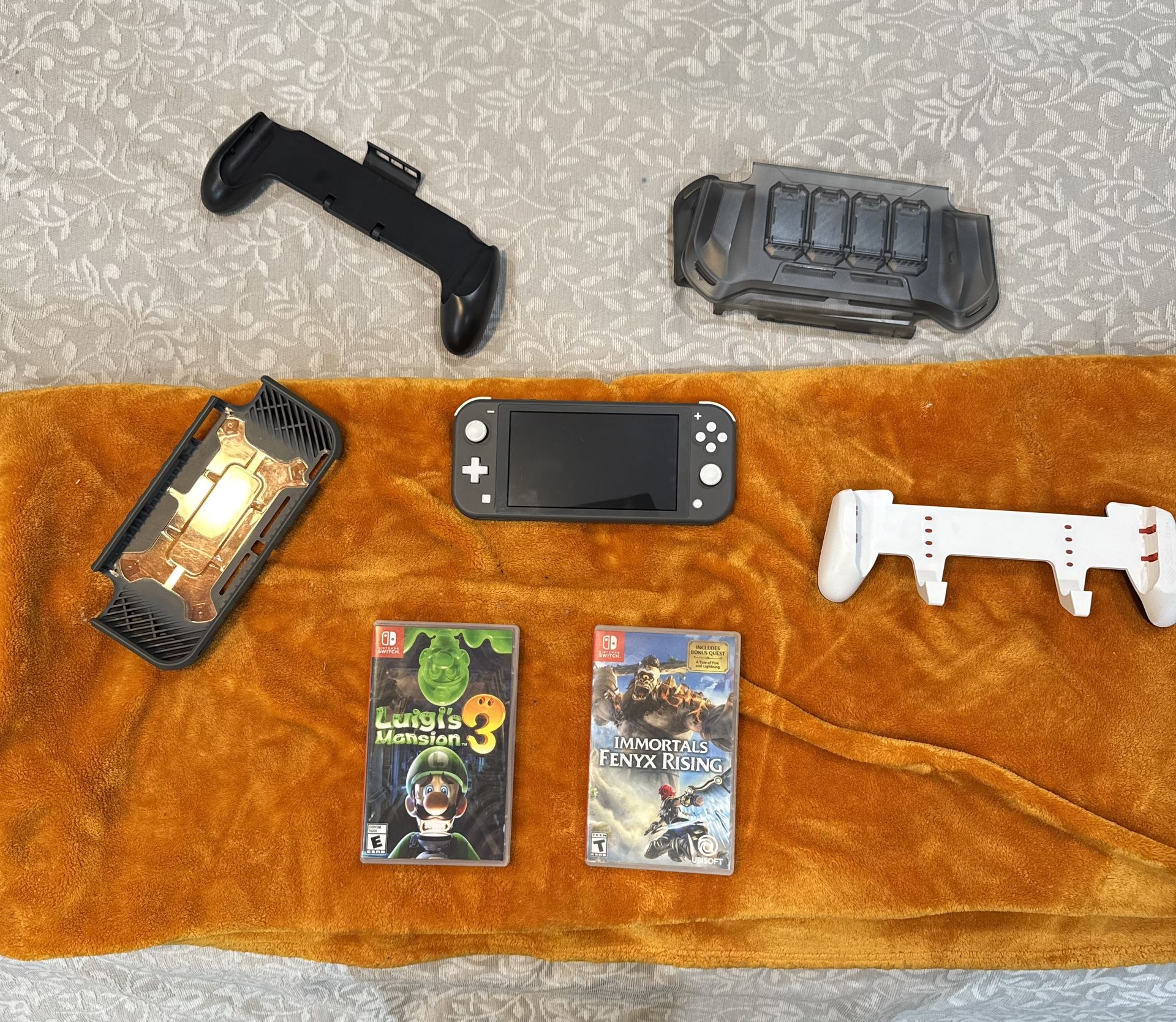 Nintendo switch light in great condition comes with two games cases grips and a memory card 256 gigs