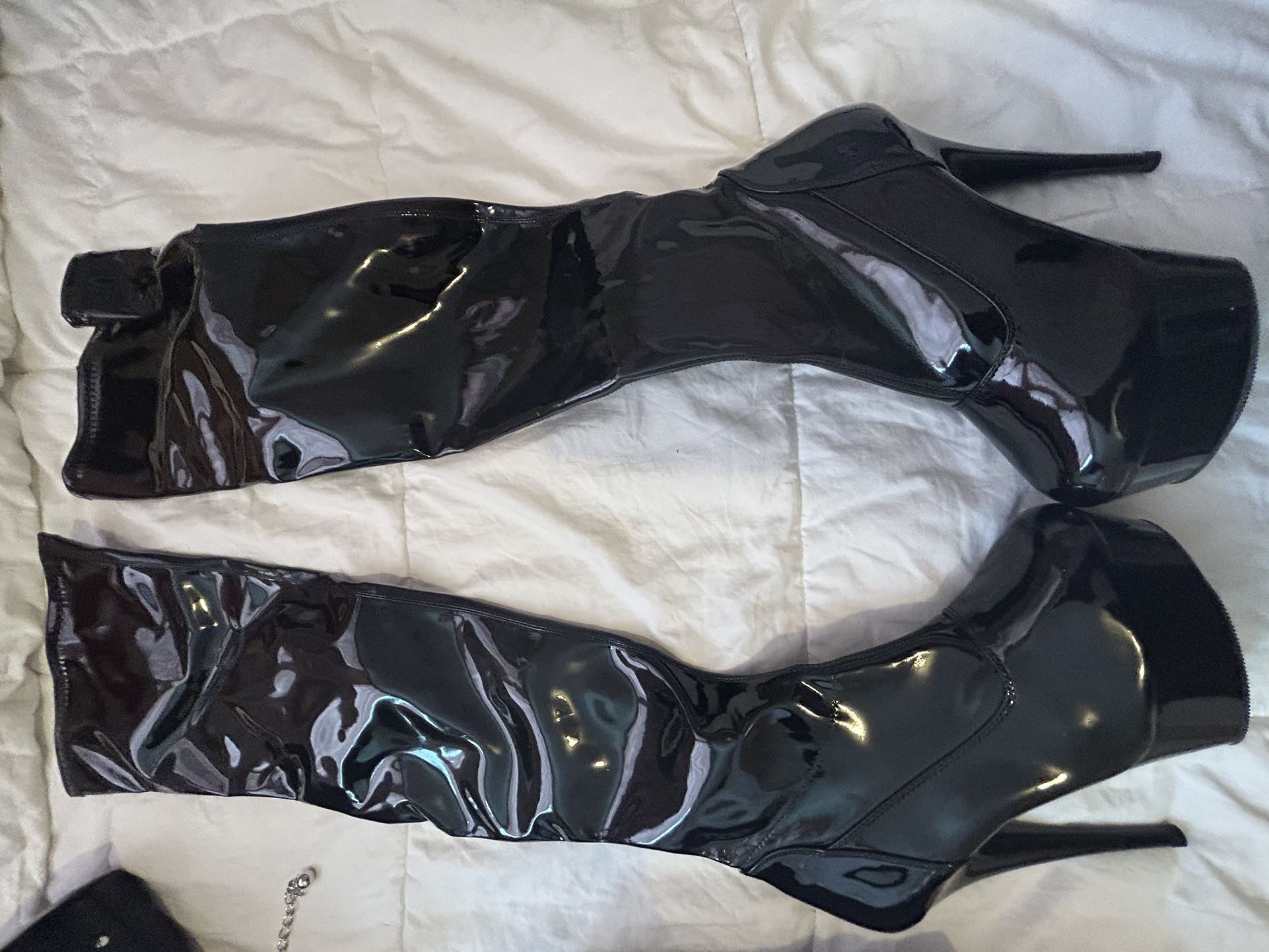 Black Thigh High Faux Leather Boots