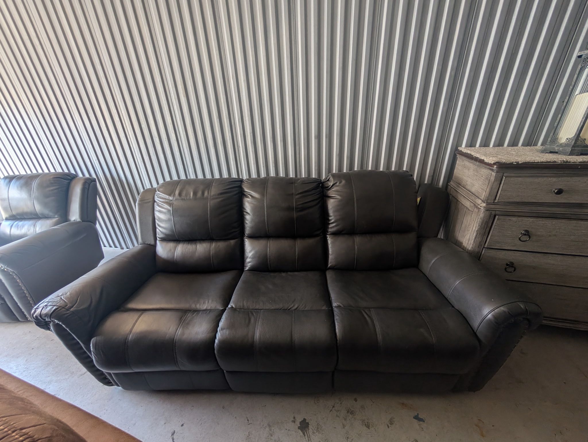 Power Sofa, Recliner & Loveseat. Faux leather, dark grey, each unit has USB charging stations , the recliner and larger sofa have power reclining ability. Beautiful furniture waiting for you, please contact me if interested!