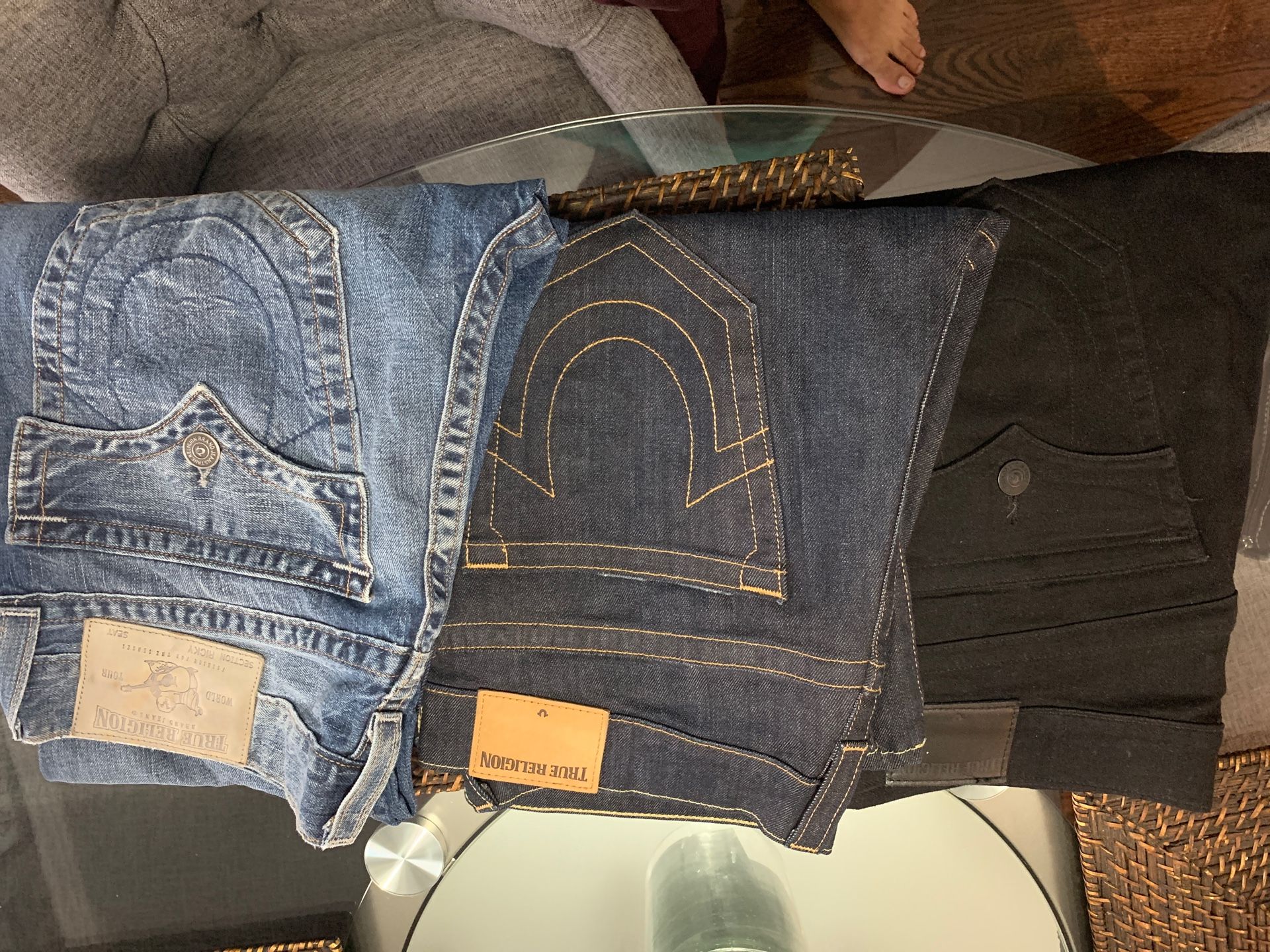 Size 34x34 true religion jeans asking $40 for each good condition.