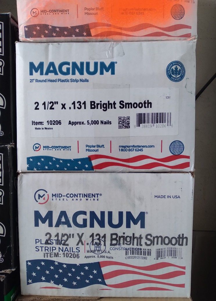 These are boxes of framing nails. Most of the boxes are new and have not been opened. We have the following 2 1/2" x .131 ~ $45 3 1/4" x .131 ~ $50