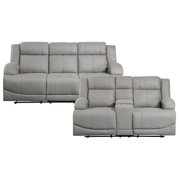 Brand New Light Gray Linen Manual Reclining Sofa + Loveseat With Cup Holders