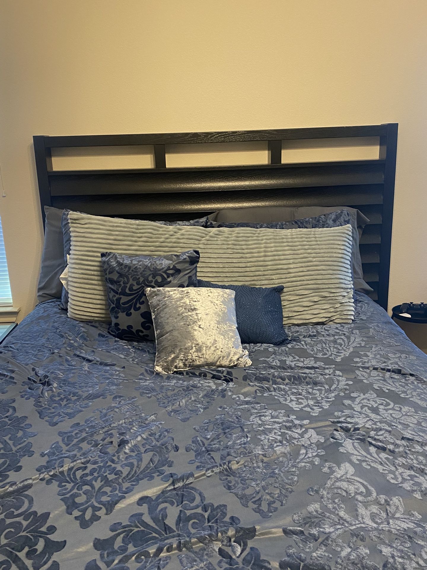 Queen size headboard, night stand, dresser with mirror, and a single dresser. Normal use. Entire set must go. $300.