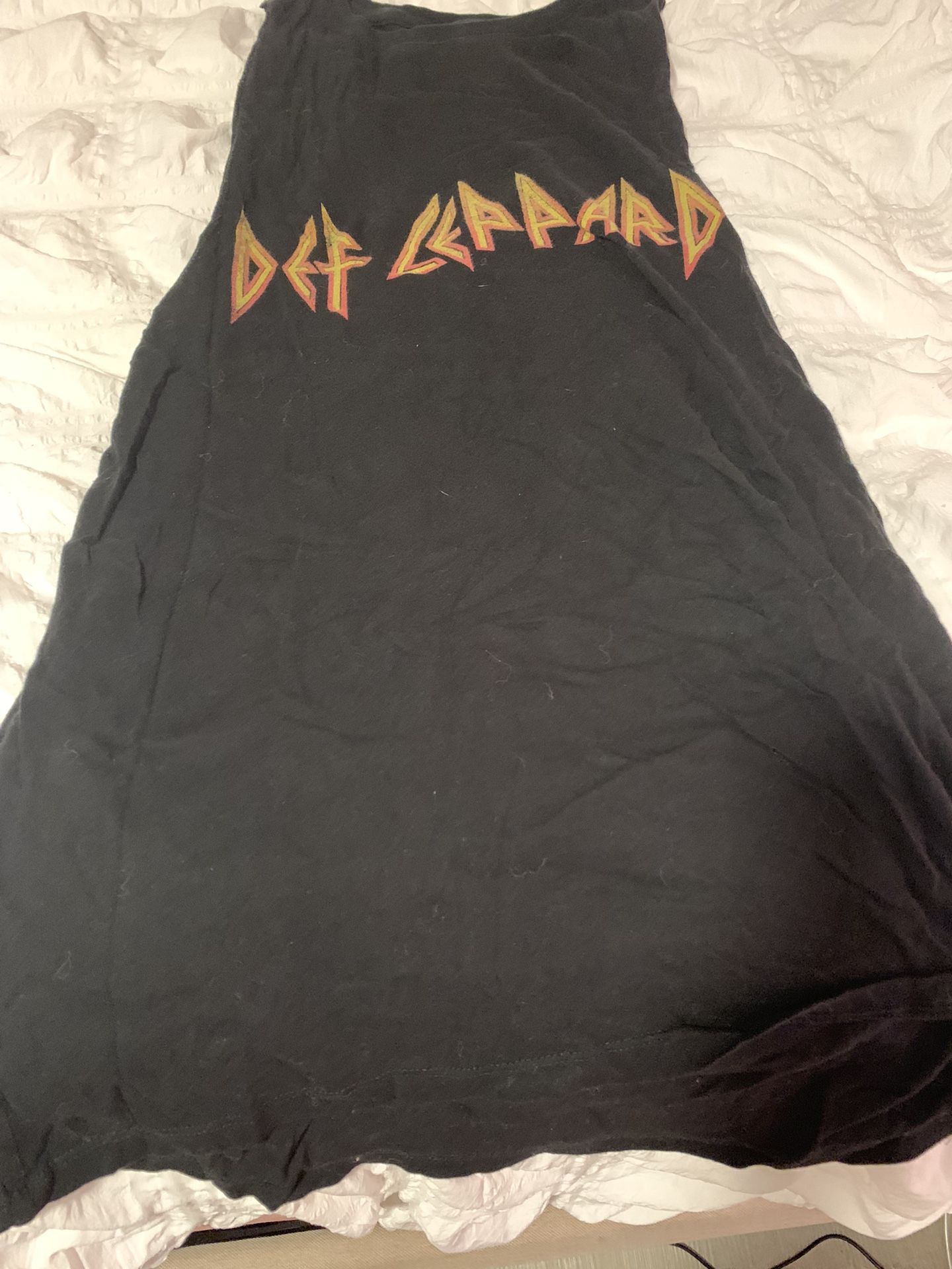 Black Def Leppard tank Size XS but is stretched quite large. 21” wide 30” long Arm holes are about 15” long Clean, smoke free home. Make offer.