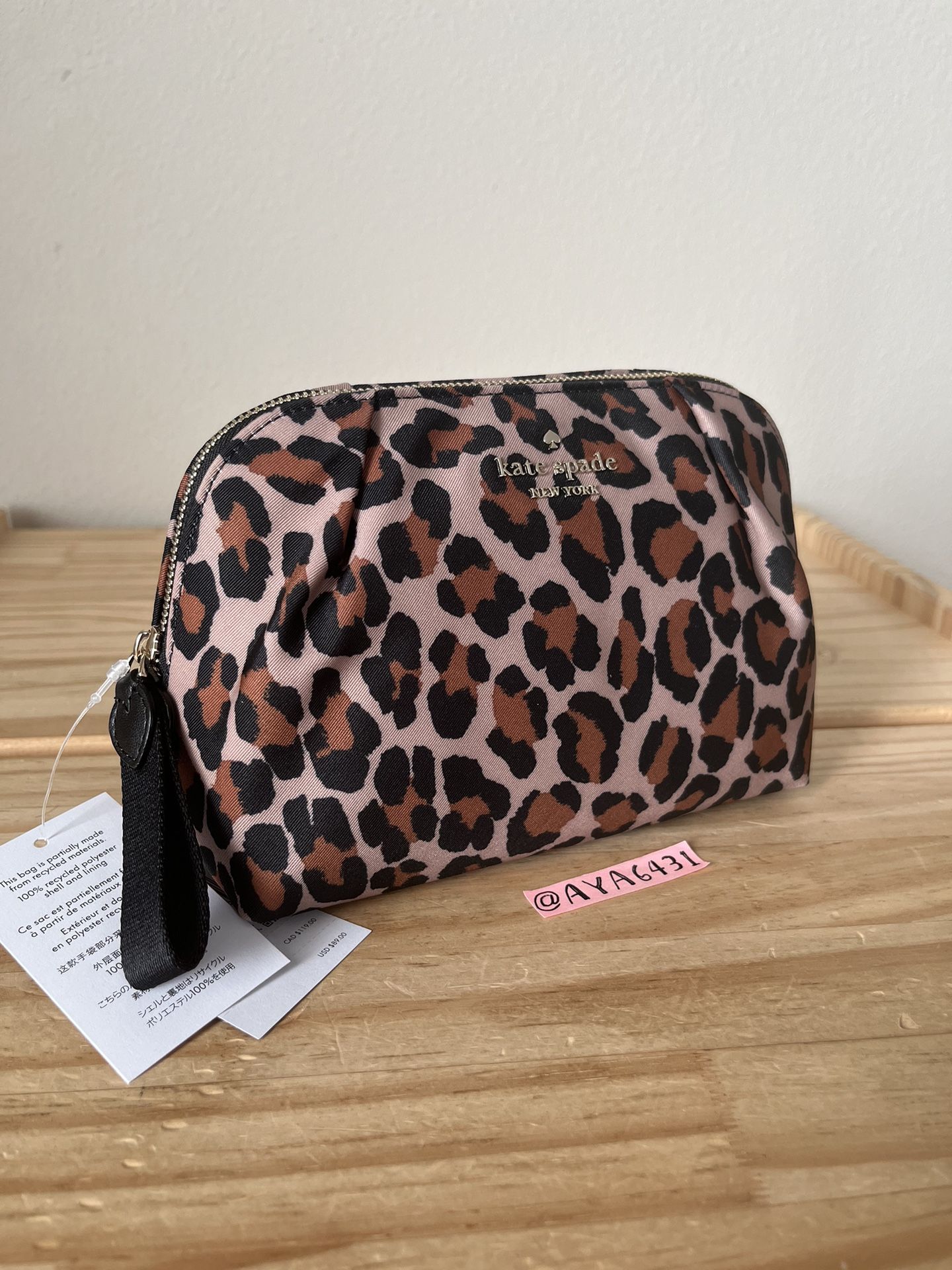 100% Authentic Brand new with tag Comes in original packaging KH755 Chelsea spotted leopard printed cosmetic bag Brown multi and gold hardware 7.5” L x 5” H x 3” D