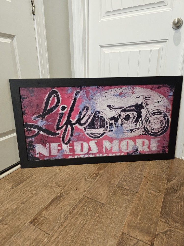Motorcycle Art, LIFE NEEDS MORE GREEN LIGHTS, 24X44. Textured Art. Retails 100