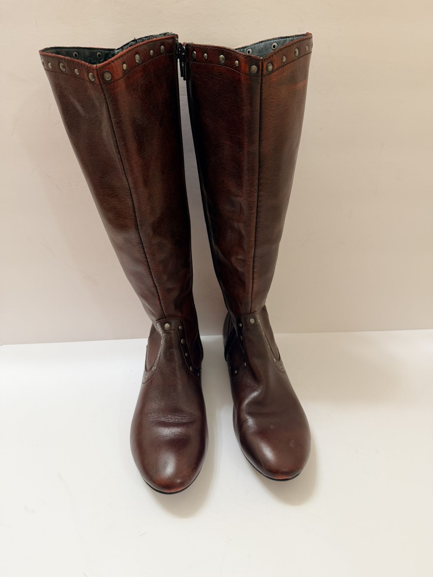 Born Cognac Burnished Leather Lizzie Western Inspired Studded Riding Boots Size 8