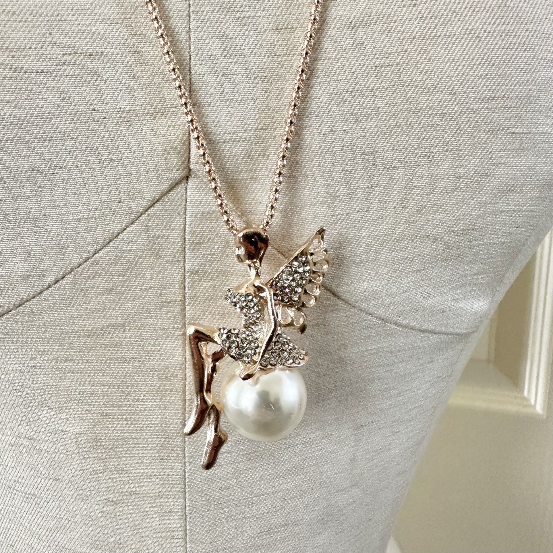 Betsey Johnson Winged fairy sits on a faux pearl Rhinestones Gold tone A few very small scratches on the pearl I have lots of other Betsey listed Pretty pendant necklace Very open to reasonable offers Fast shipping Smoke and pet free home Bundle to save (the more you buy the bigger the discount ) Please see photos for details (they are part of the description) Happy to answer any questions Thanks for stopping by!