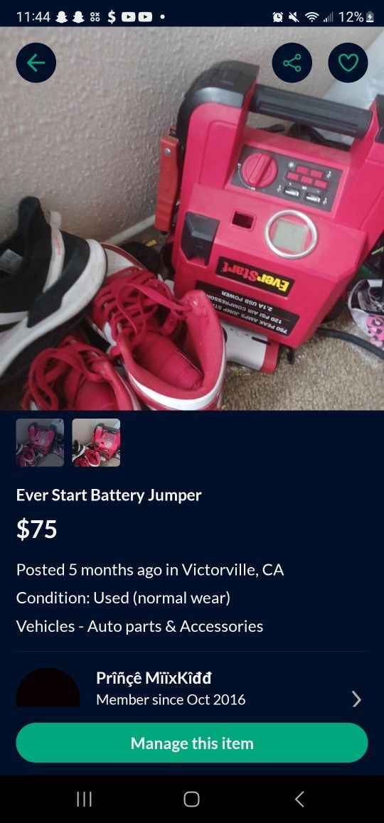 Batter jumper/ tire compressor Let's you kno how much Battery life it has , also showes your tire pressure if you connect the tire pump to it. . Barely used so still in like new conditions 👍