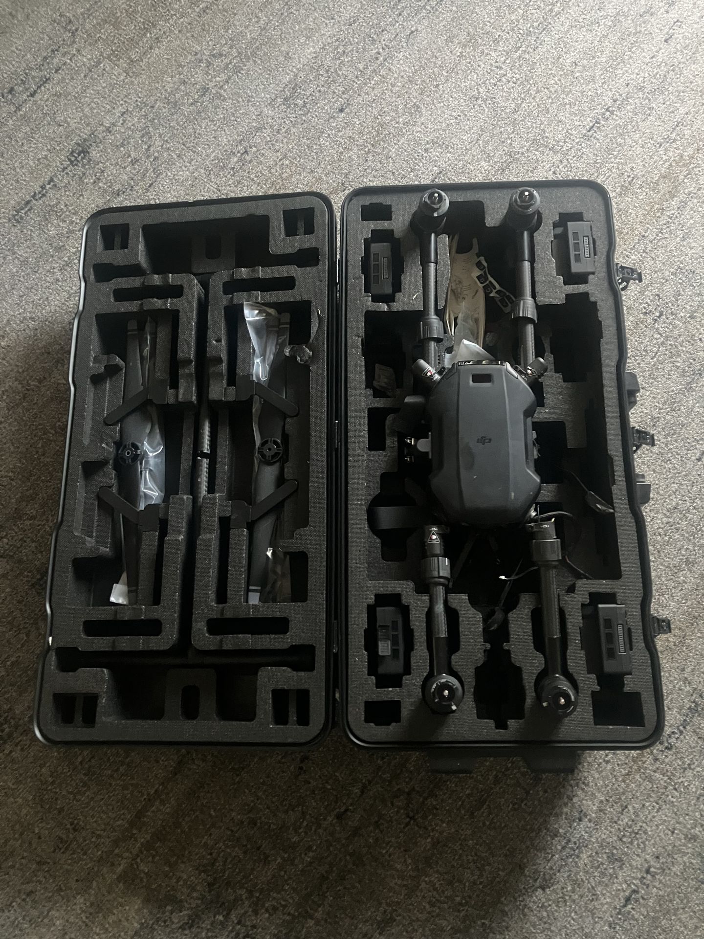 Selling a JDI matrice 200 drone for parts, 4 batteries, broken drone & case No charger-No controller , only what is in the pictures. See pictures for details I bought it at a storage auction, no sure if works, sold as is- for parts $200