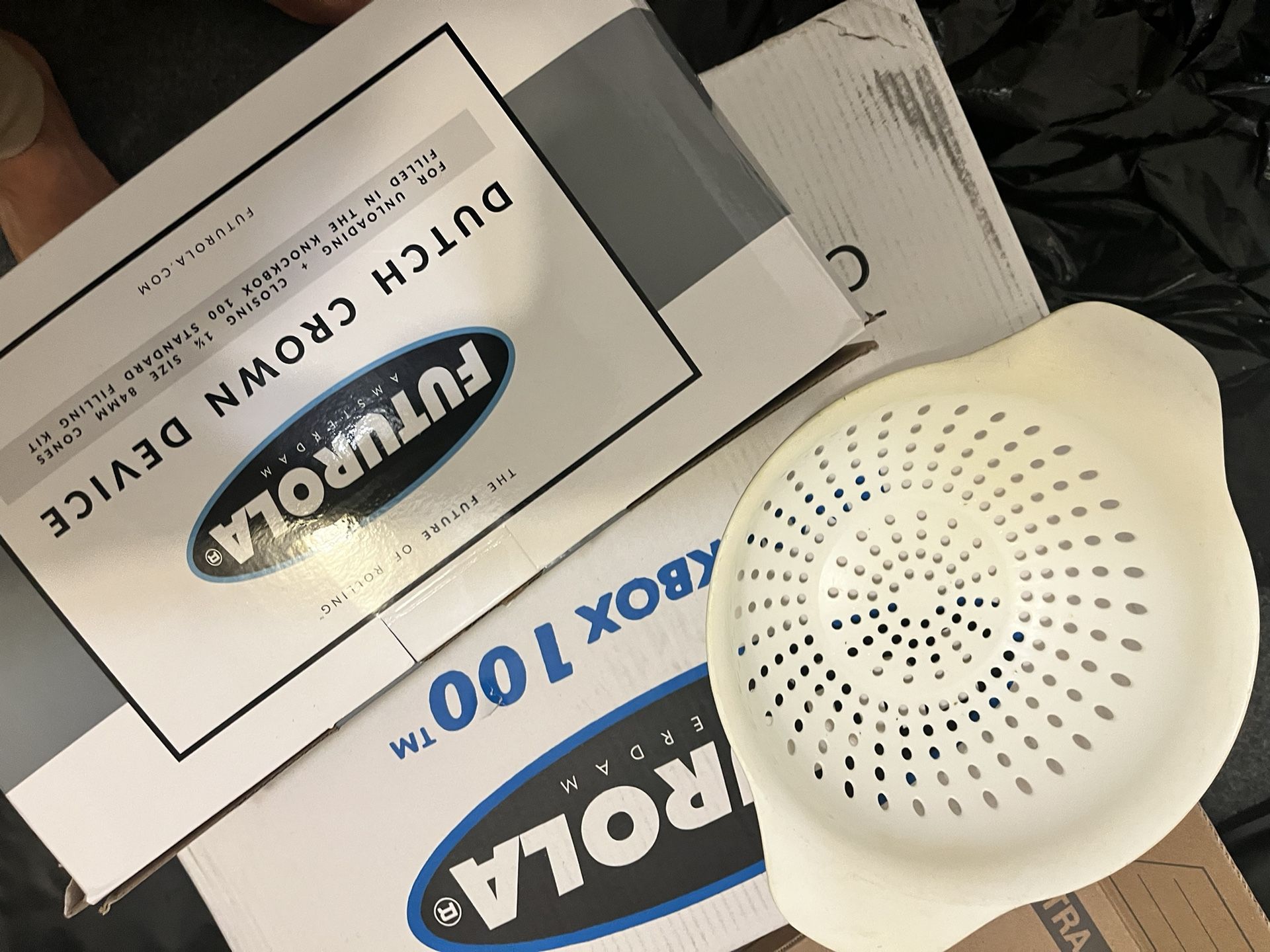 Complete Futurola Knockbox 100 setup including main unit (both boxes), mix tray, unload station, controller, power supply, and large Futurola mixer. Equipment is clean, well maintained, and stored in original boxes. No damage. Great for cone filling, herbal or tobacco applications. Selling as a full bundle only. Local pickup preferred. Cash/Zelle. Priced to sell quickly.