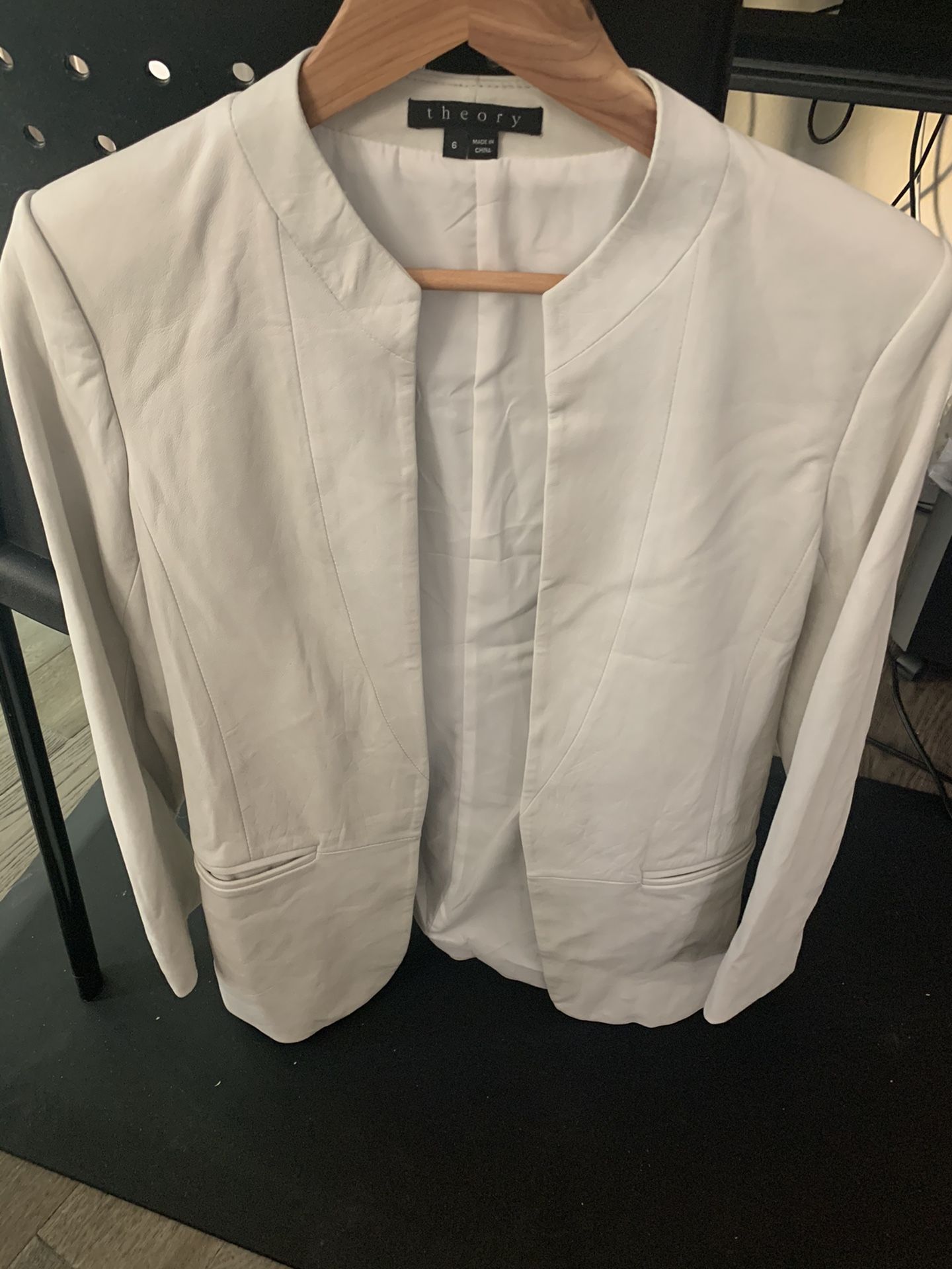 Super soft 100% Lambskin Jacket, cream color hard to find in this quality, no rips, tears, or discoloration. May have been custom professionally altered, see cuffs picture, check measurement for fit.