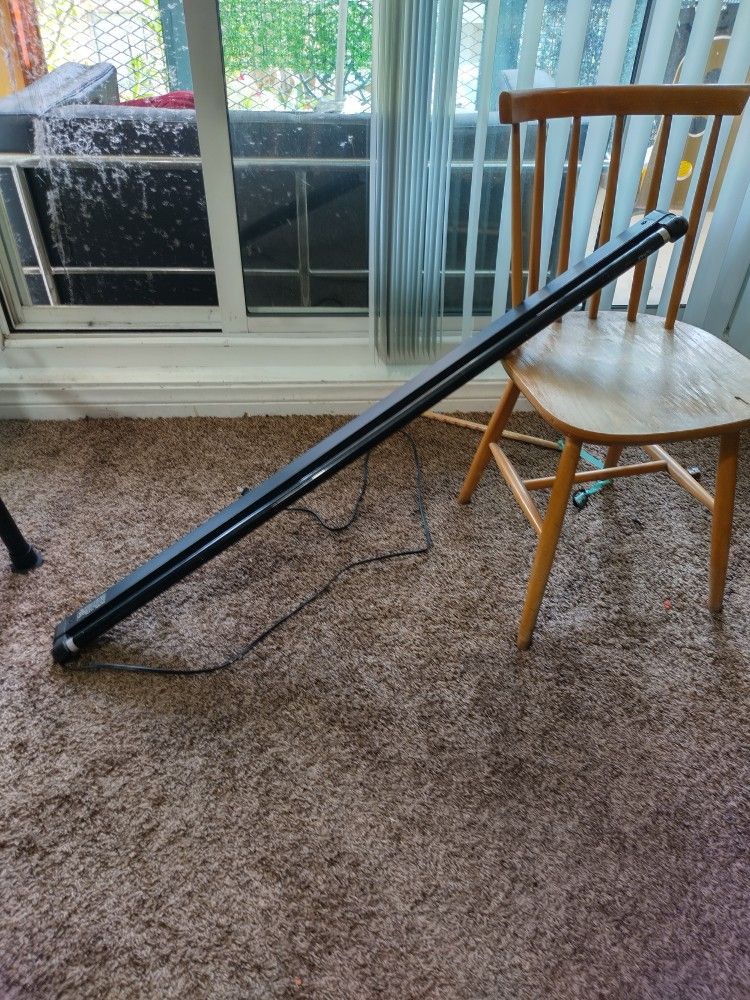48 in. black light. Has wall mount brackets for easy installation. Works great, bulb has gotten a bit dull now but can easily be replaced from any home hardware store, original price is $65 so this is a great deal.