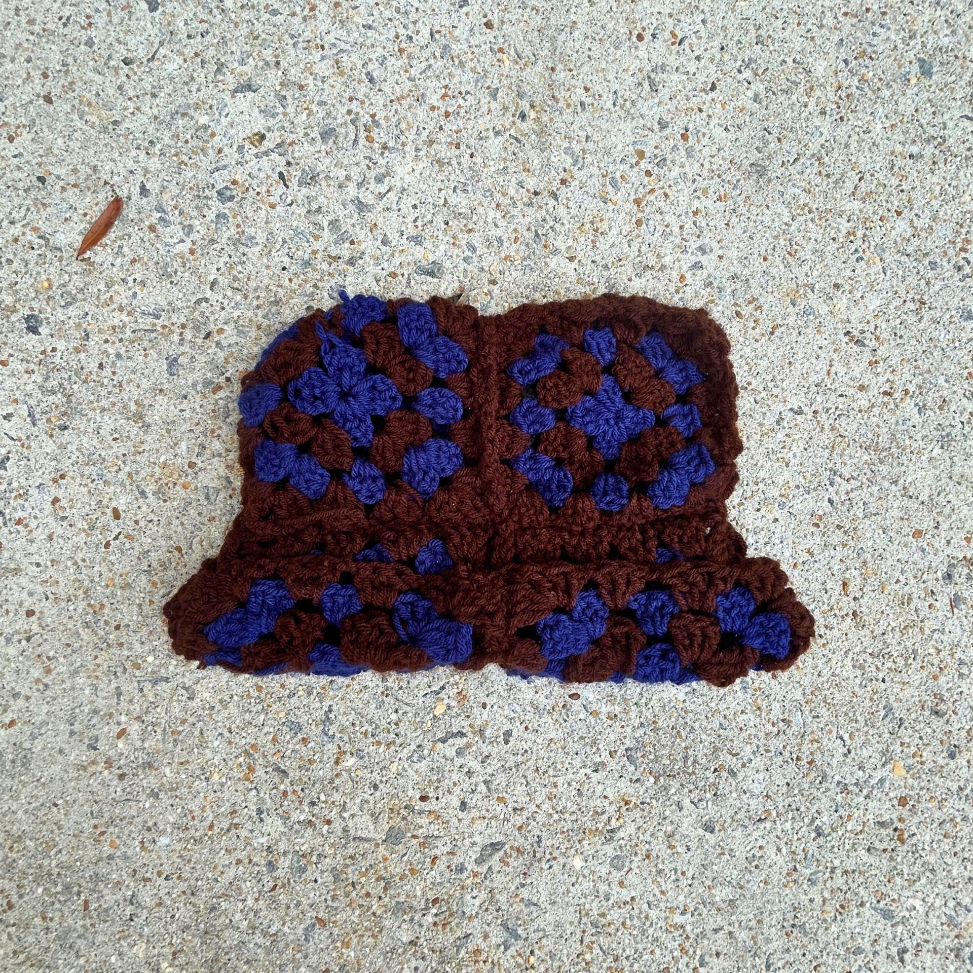 Brown and blue cat ear crochet beanie hat #festivalvibes